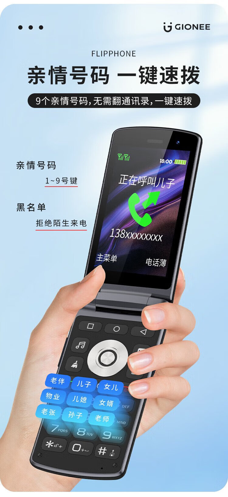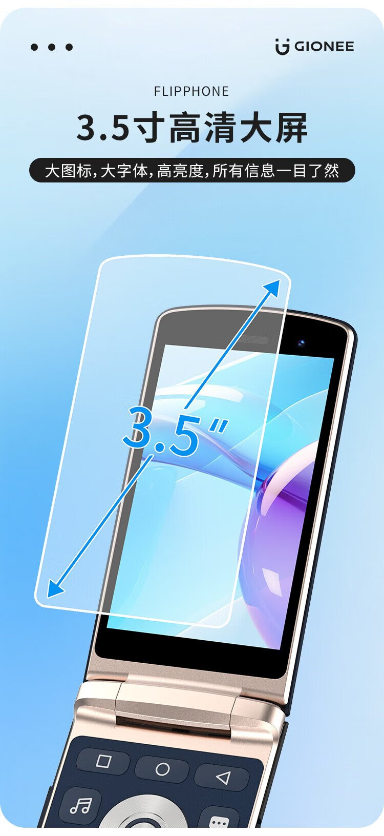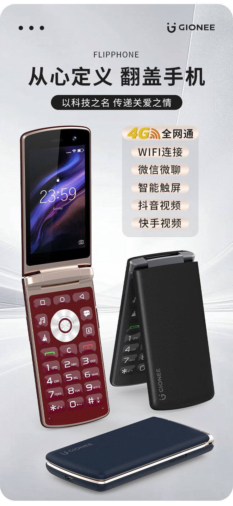 Gionee Z15 one-click WeChat Douyin Kuaishou video smart flip full Netcom mobile phone for the elderly with large screen, big characters, loud sound, special for the elderly, three-proof, pure and ad-free, blue
