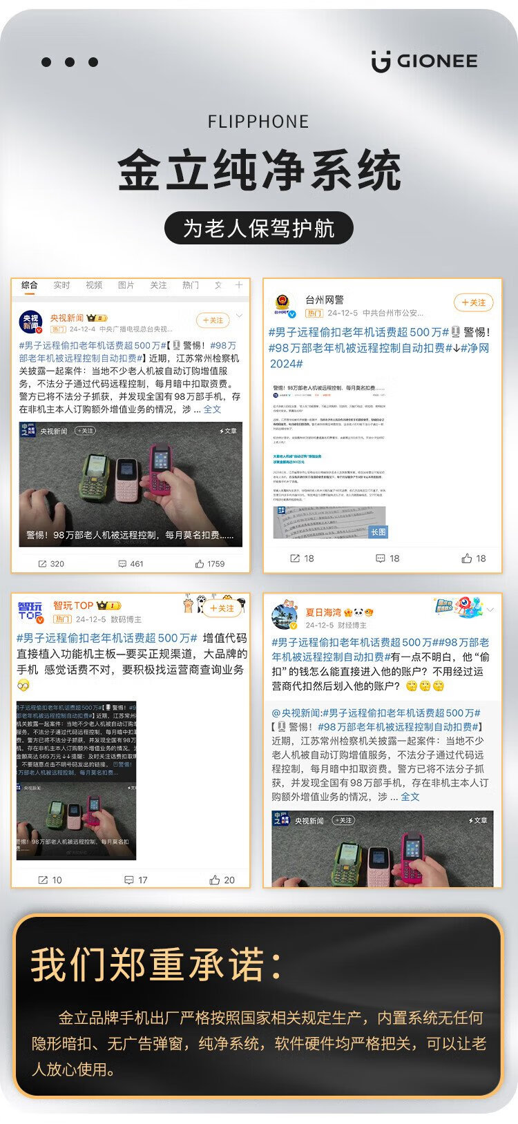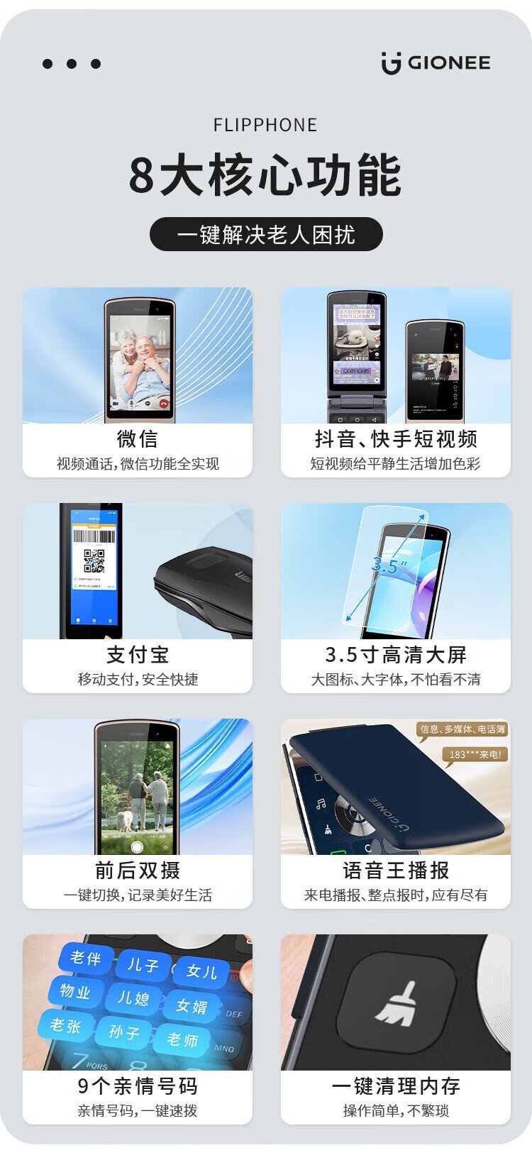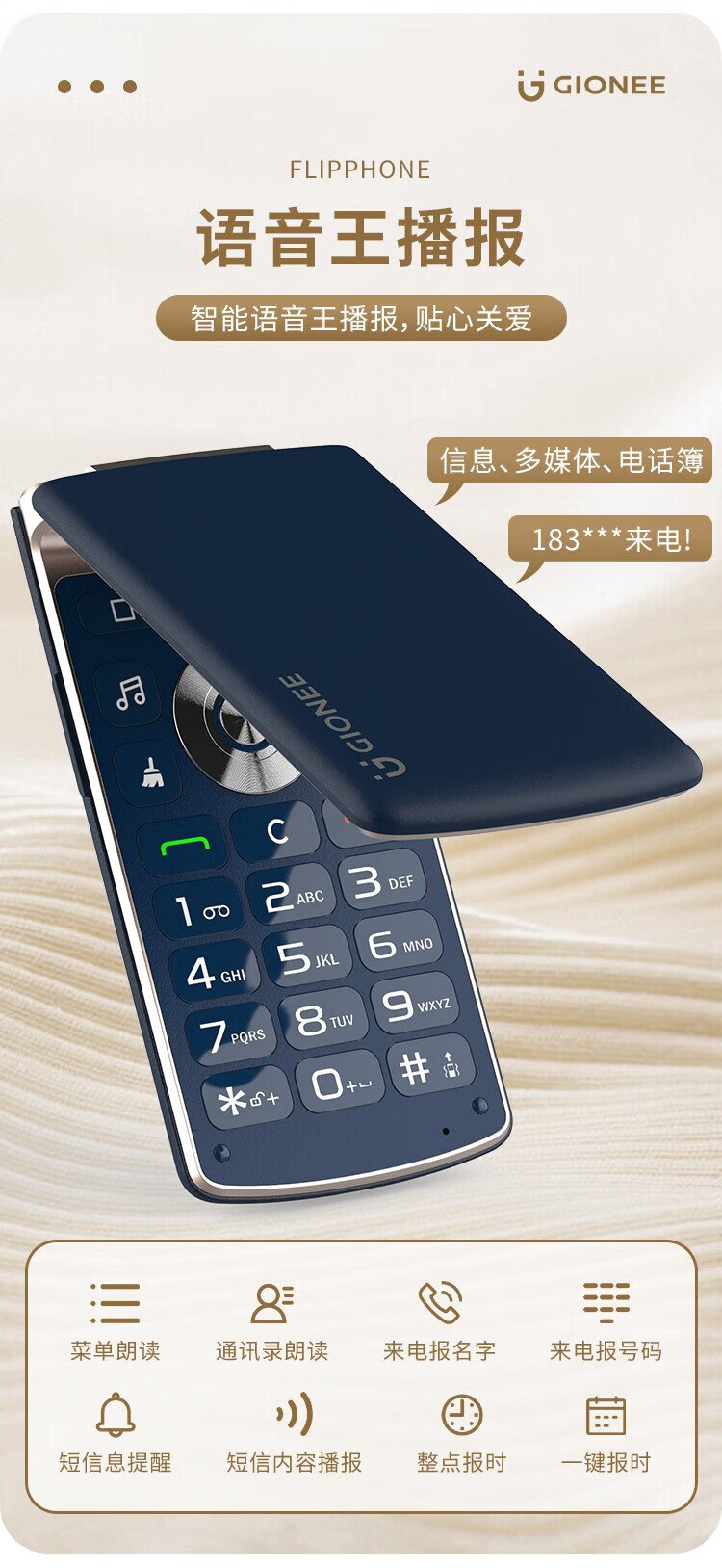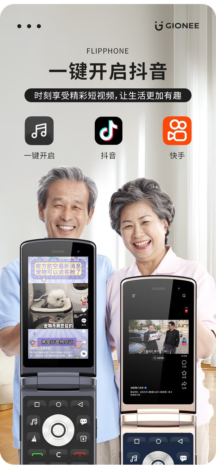 Gionee Z15 one-click WeChat Douyin Kuaishou video smart flip full Netcom mobile phone for the elderly with large screen, big characters, loud sound, special for the elderly, three-proof, pure and ad-free, blue