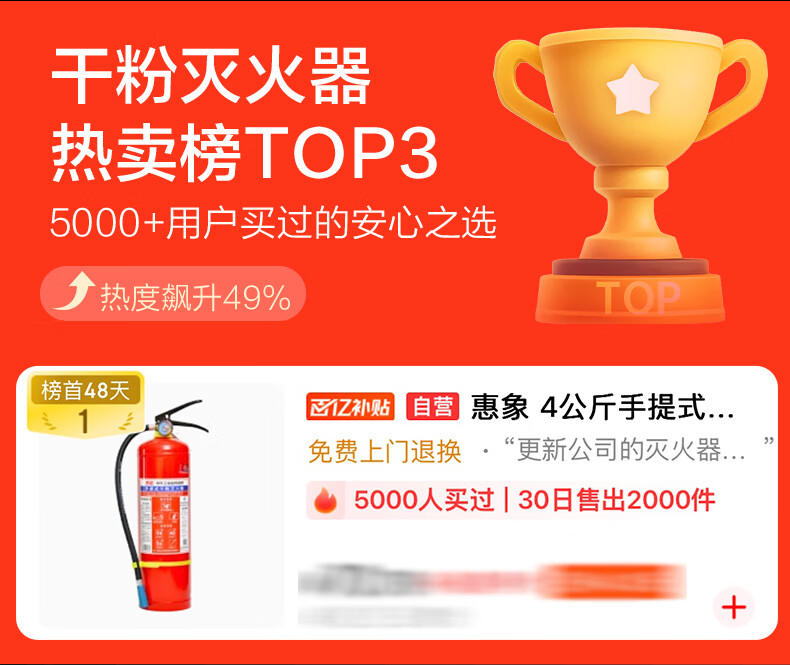 Huixiang 4kg portable dry powder fire extinguisher 25 years new national standard fire certification household commercial vehicle Jingdong Industrial own brand MF/ABCE4 2A 55B C E