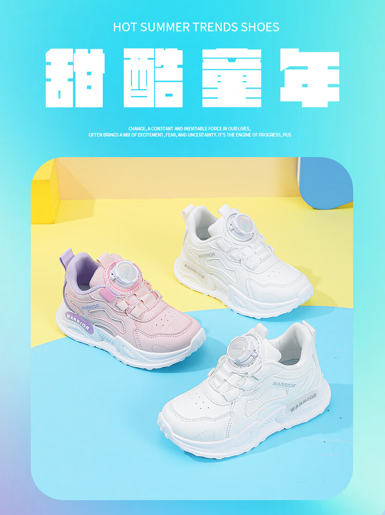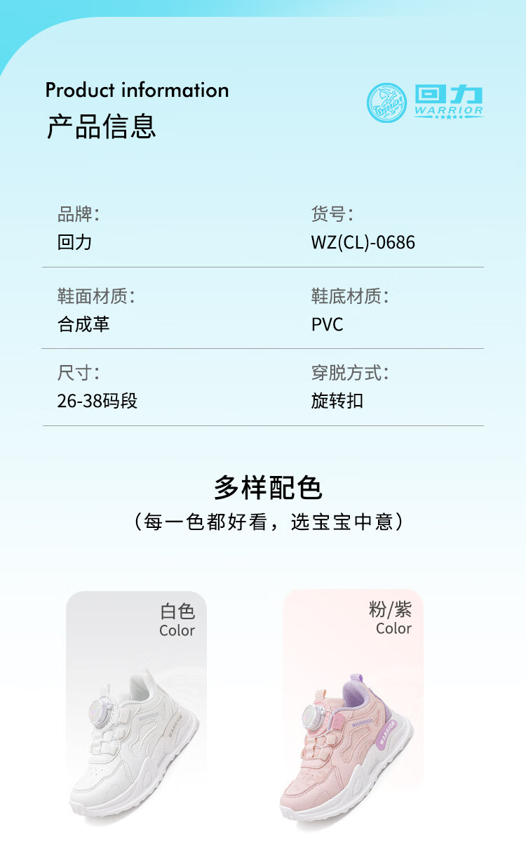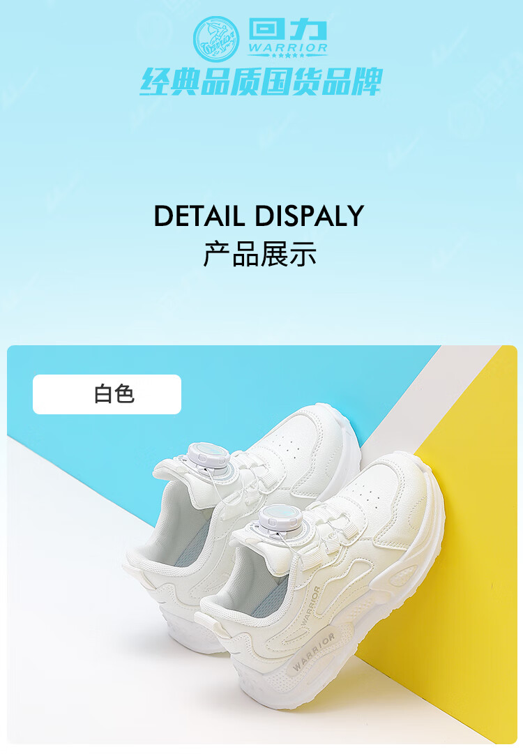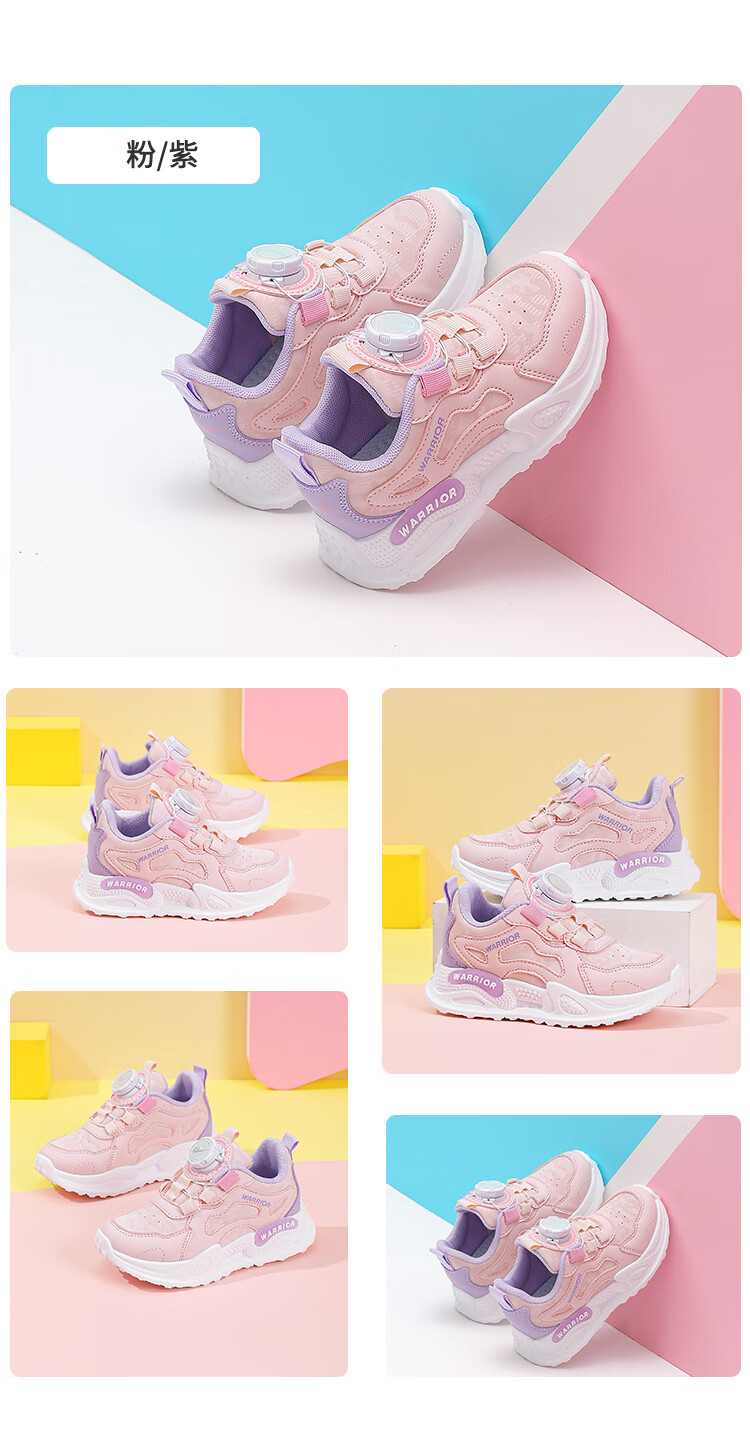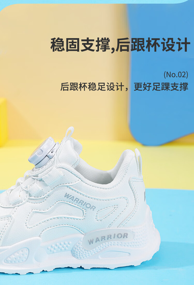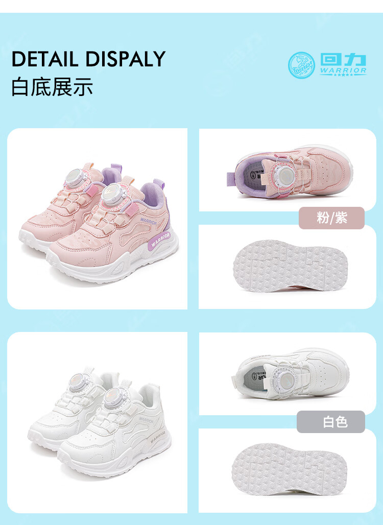 Warrior Girls' Sports Shoes Spring and Autumn Lightweight Soft Soled Casual Running Shoes WZ(CL)-0686 White 34