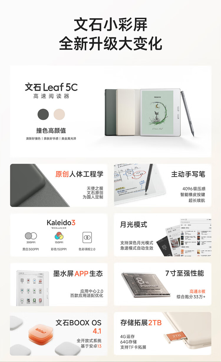 BOOX aragonite e-paper book Leaf5C 7-inch active pen set color ink screen e-book electronic paper vitality gold portable reading office tablet