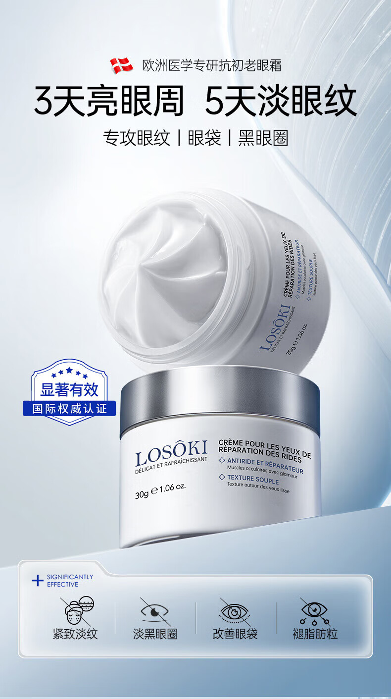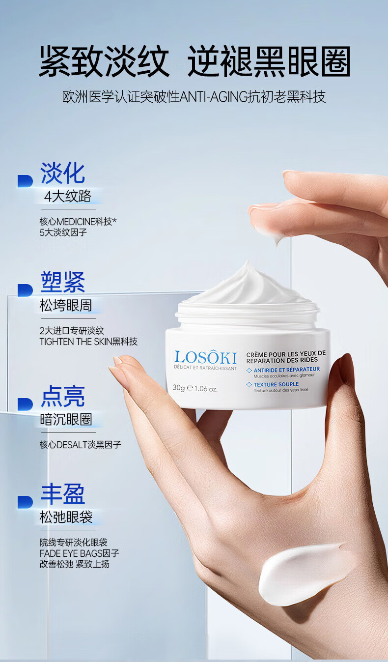 Losoki Swiss imported eye cream fades fine lines, lifts and tightens dark circles, removes eye bags, anti-wrinkle and anti-aging skin care products as gifts