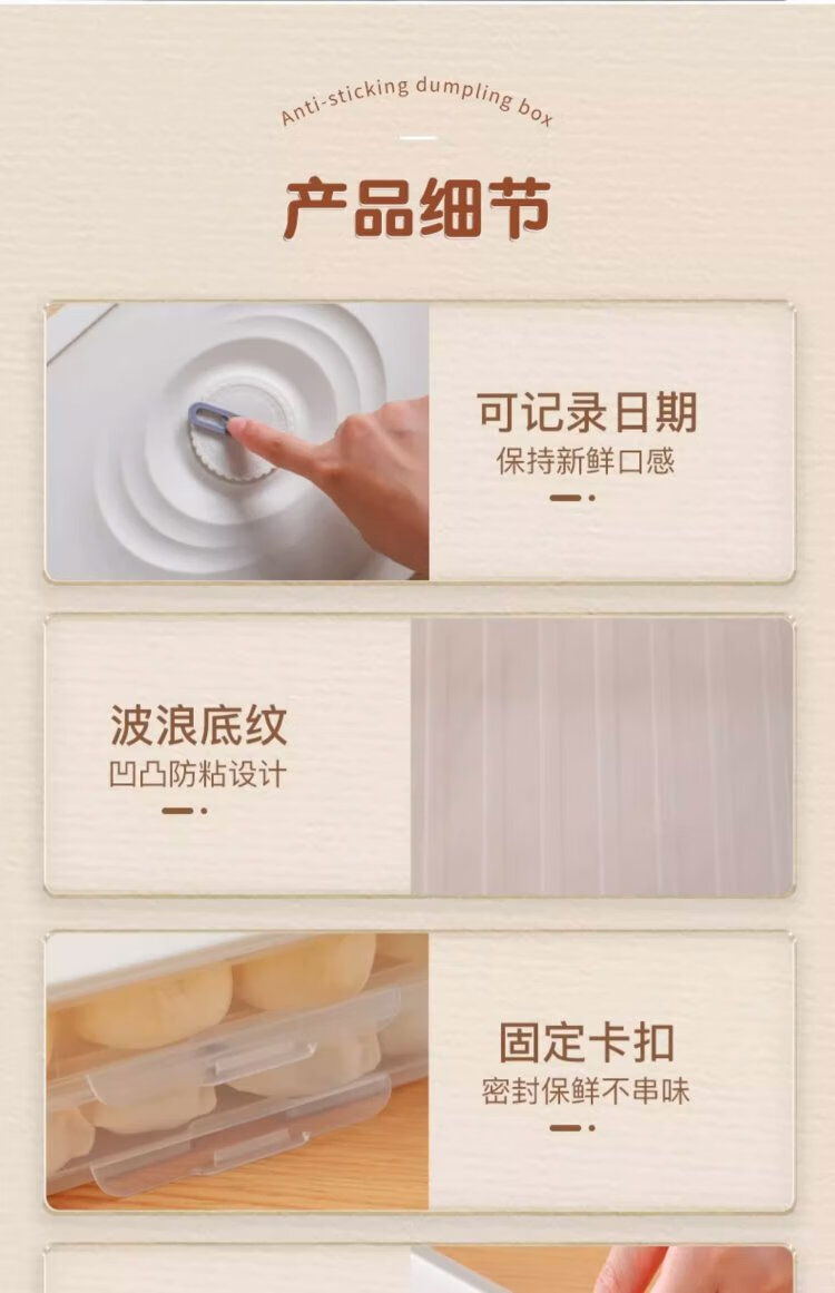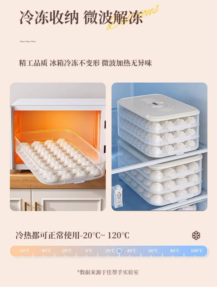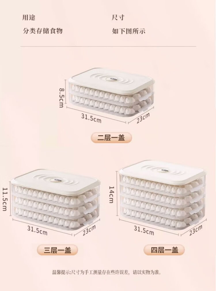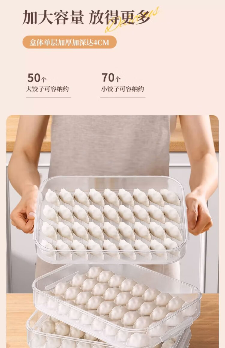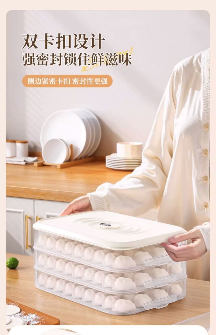 Jia Bangshou dumpling box refrigerator storage box food-grade fresh-keeping dumplings and wontons frozen storage box special tray - 3 layers