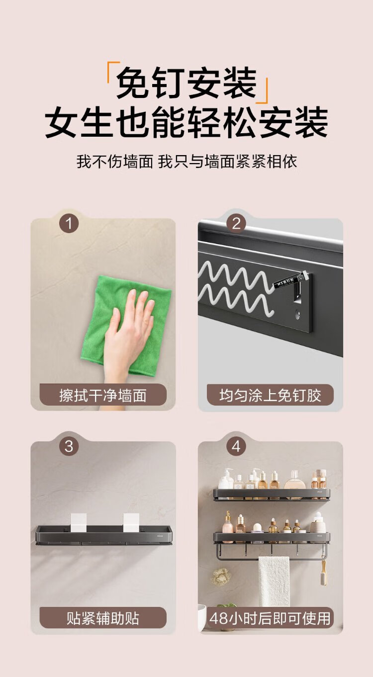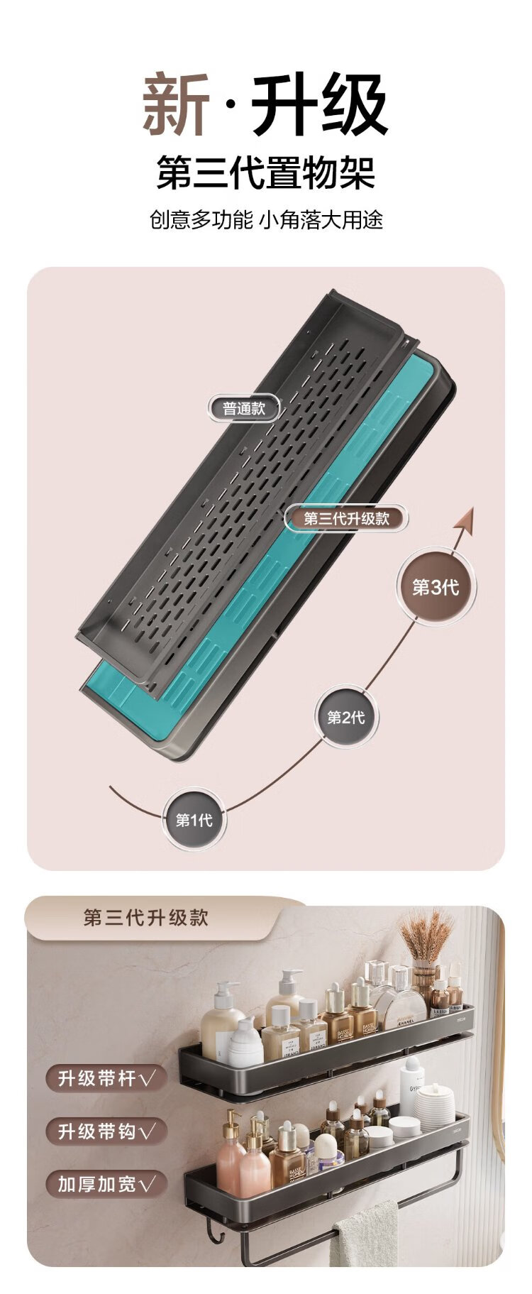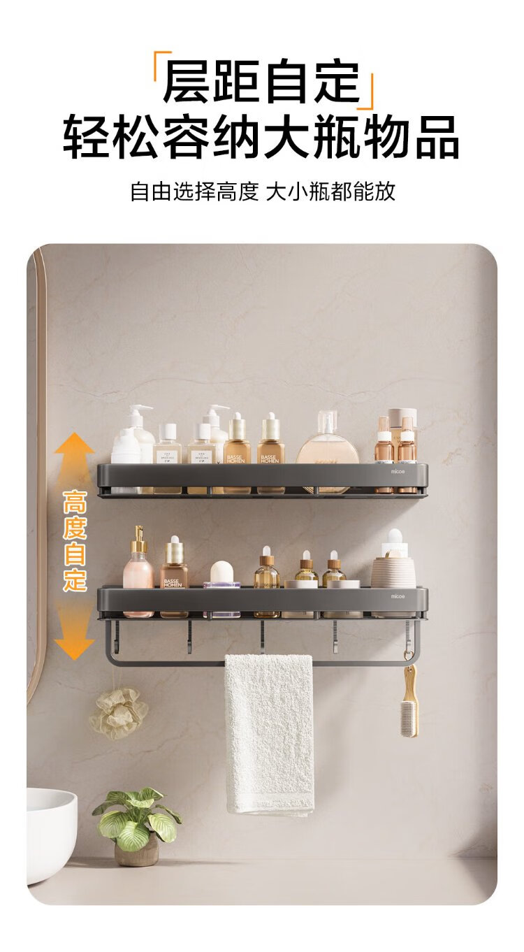 MICOE bathroom shelf space aluminum punch-free toilet sink kitchen storage wall-mounted bathroom shelf 1 piece