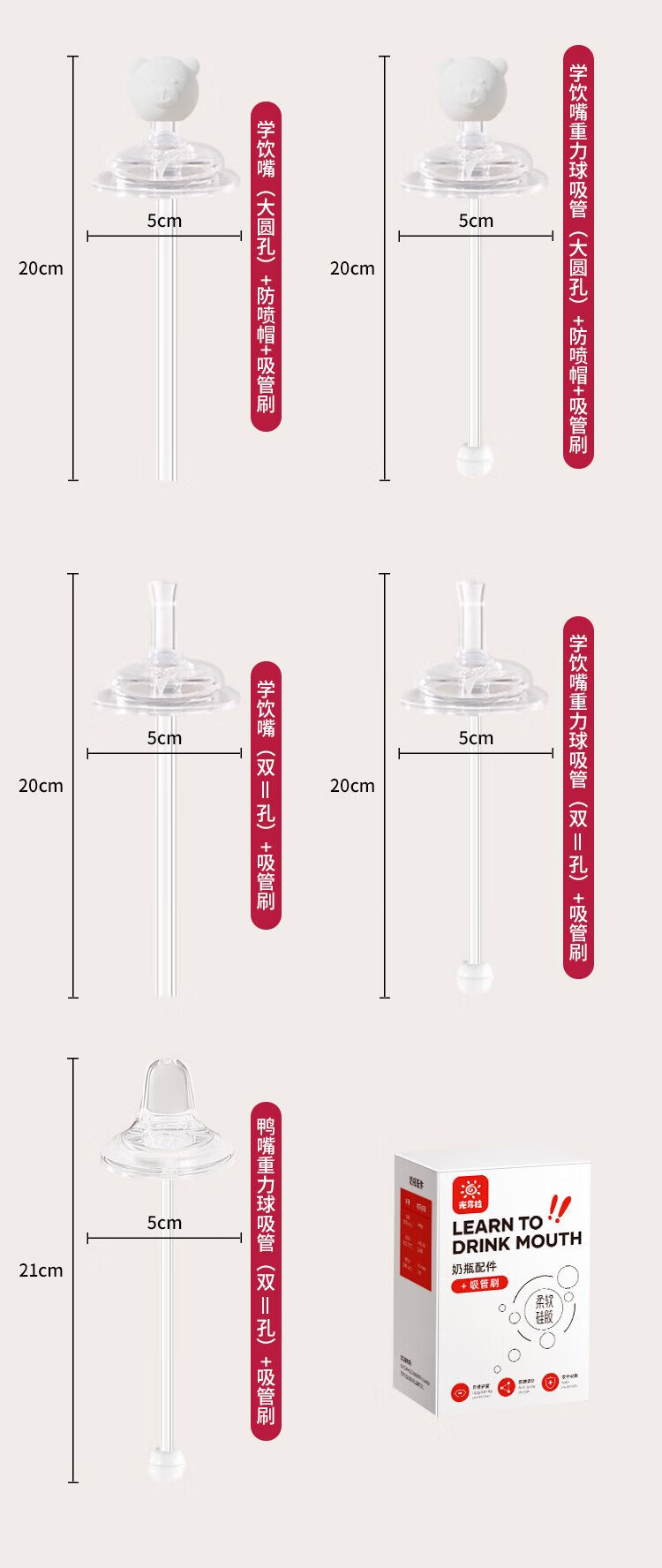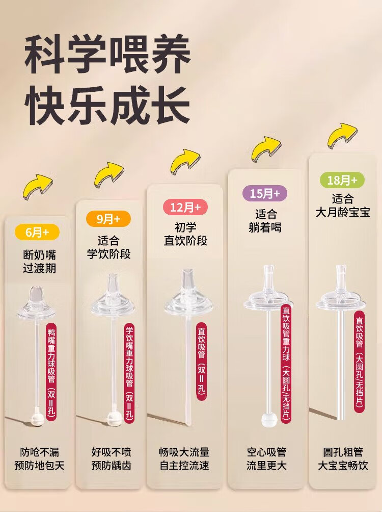 Guangdola straight drinking straw nipple bottle accessories universal weaning anti-spray 11-character hole learning drinking mouth suitable for pigeon/good children