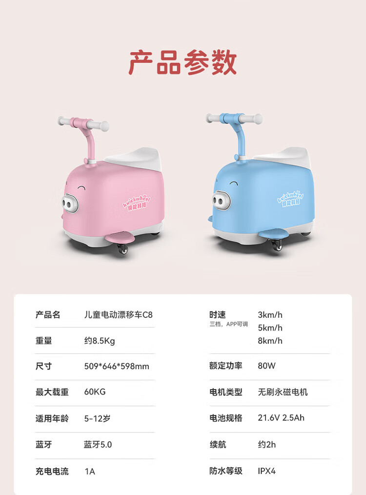 Fast Wheel Children's Electric Scooter Electric Drift Car C8 Intelligent Balance Car Twist Car Peanut Car Piggy Style 5-12 Years Old Birthday/Children's Day Gift Pink