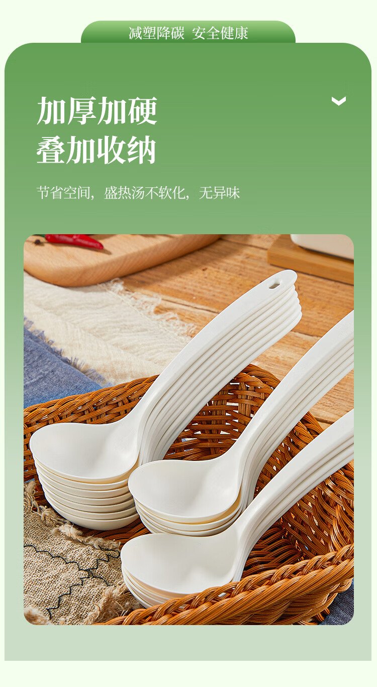 SHUANG YU disposable large spoons 20 large soup spoons ramen spoons extended corn-based plastic hot pot long handle male spoons