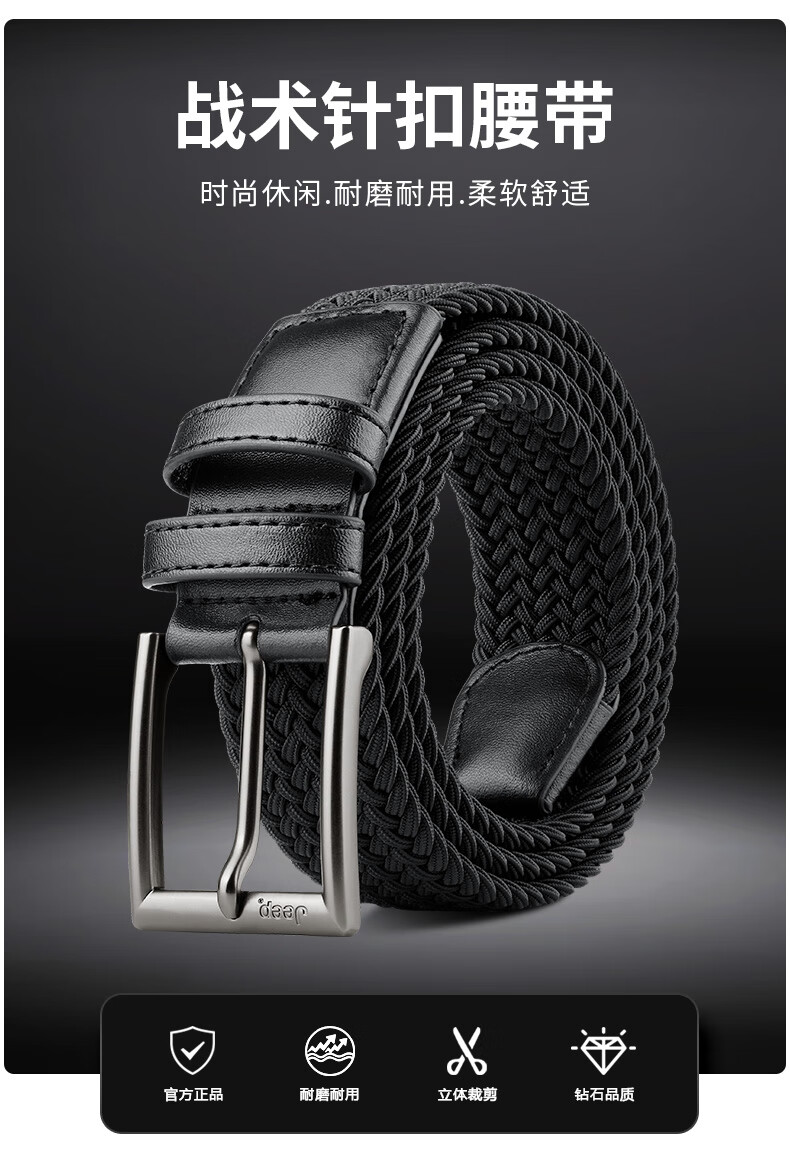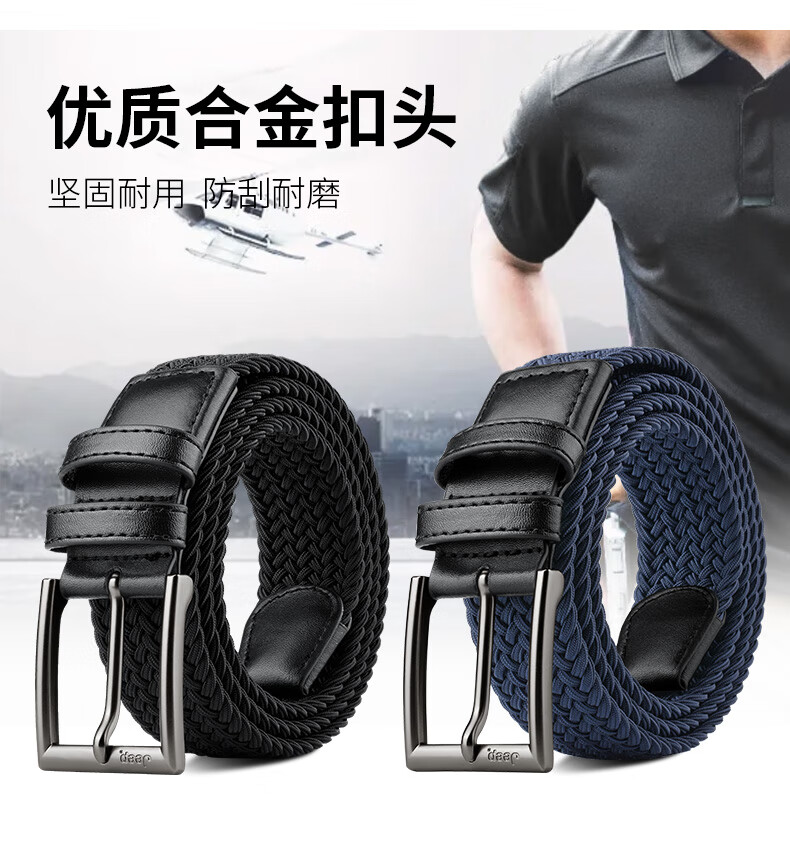 JEEP belt men's punch-free pin buckle canvas woven high elastic trousers belt is a practical birthday gift for boyfriend and husband
