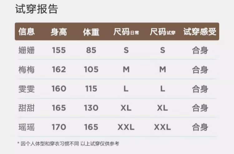 China (cm) 160-165/84-86 165-170 / 88-90 167-172 / 92-96 168-173 / 98-102 170-176 / 106-110