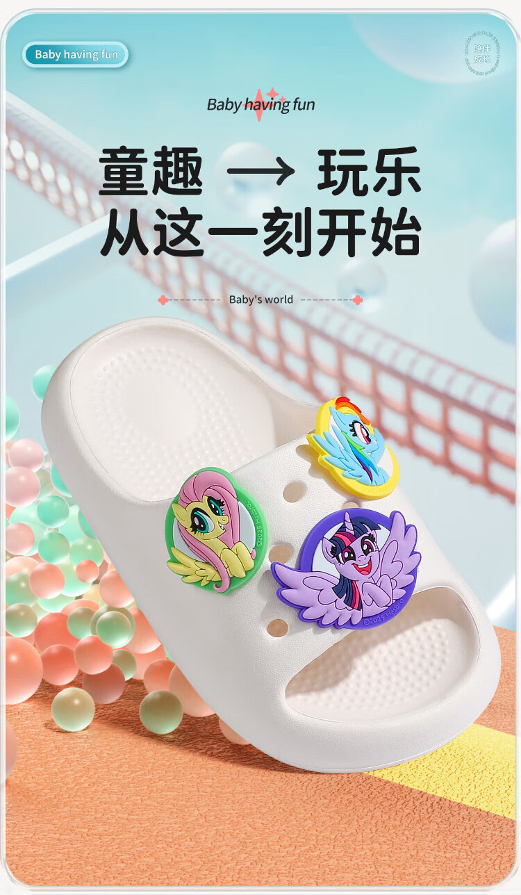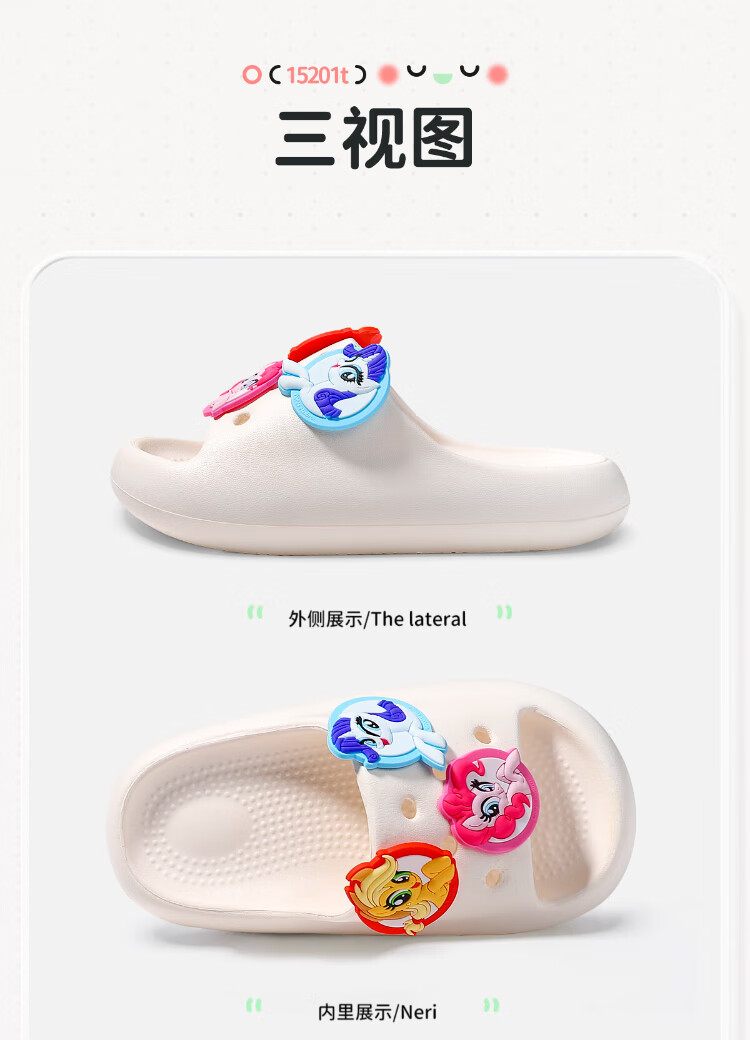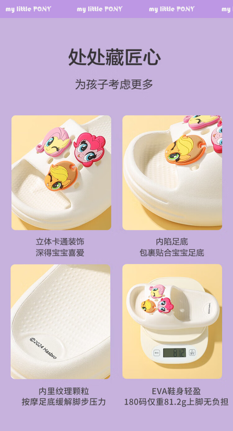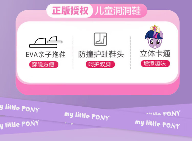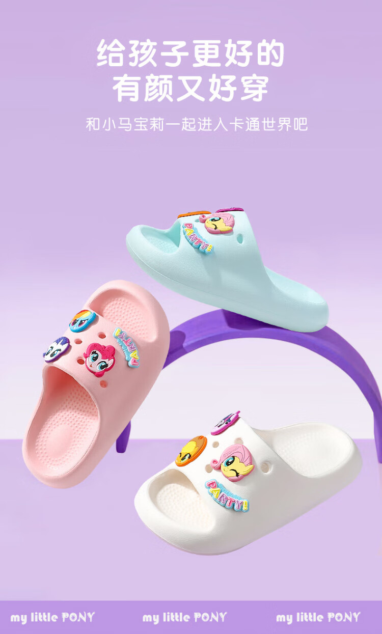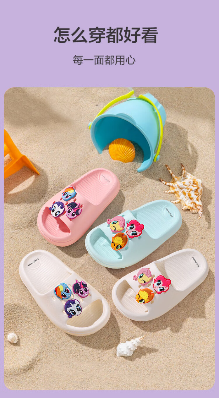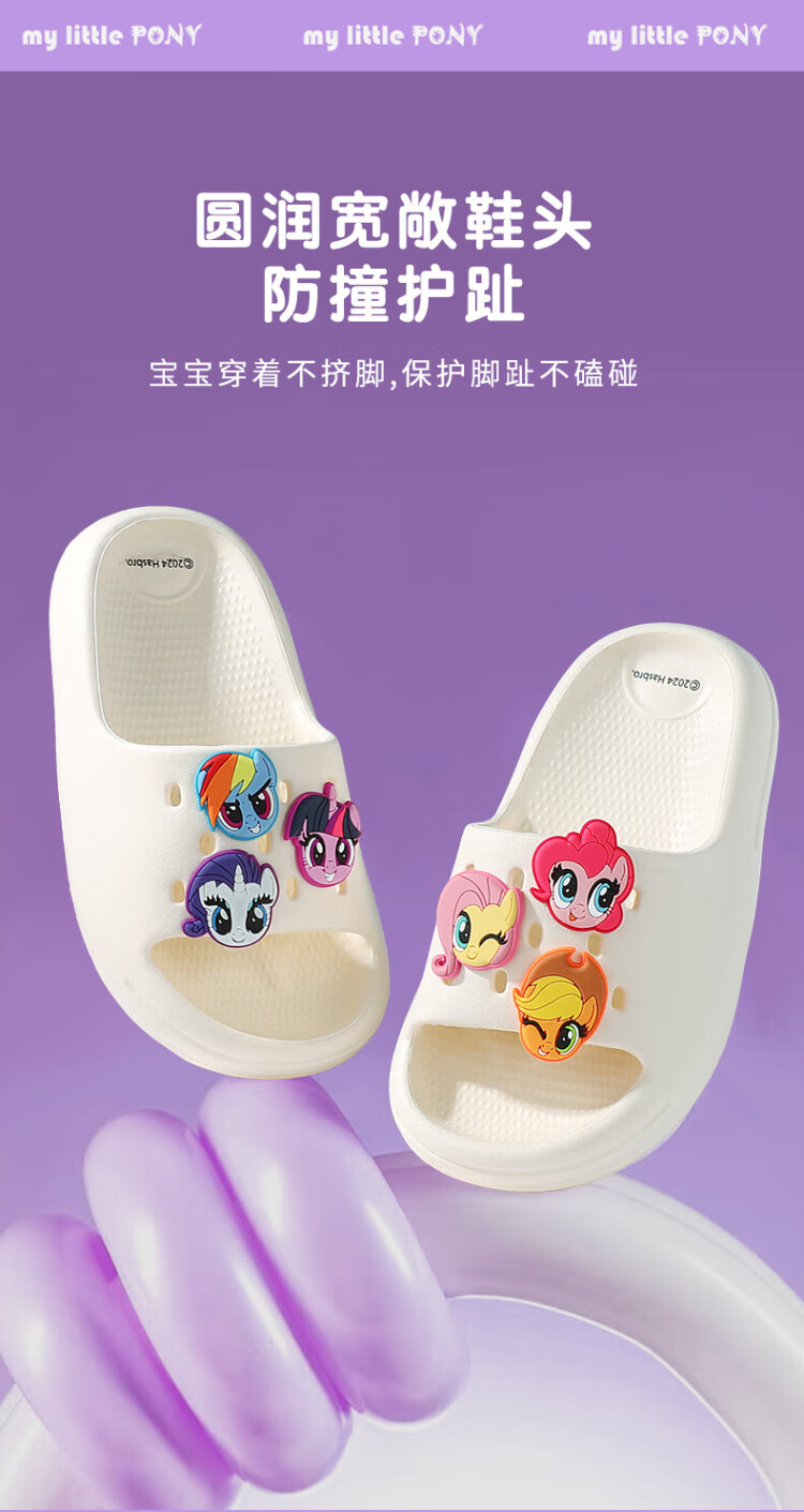 My Little Pony Children's Slippers Women's Summer Model Medium and Large Children's Soft Sole Anti-Slip Baby Slippers Round Purple Size 220