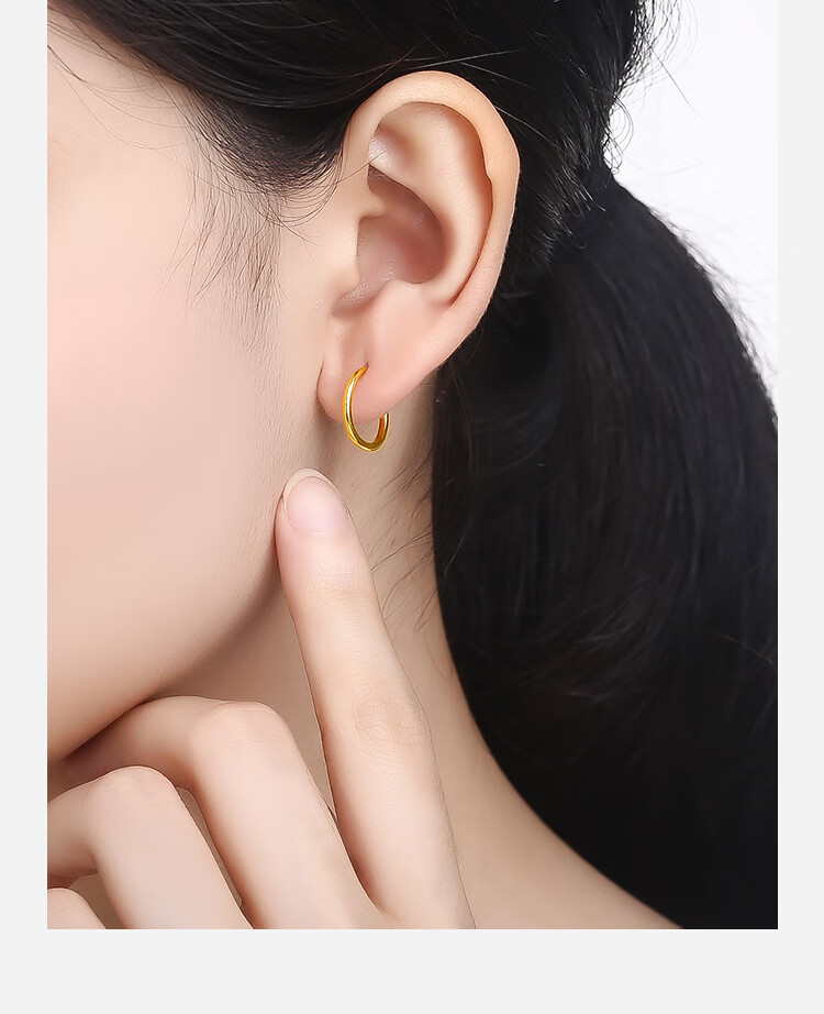 Saturday Blessing Simple Pure Gold 999 Gold Earrings Girls Birthday Gift Price AA090923 One Pair Approximately 1.21g