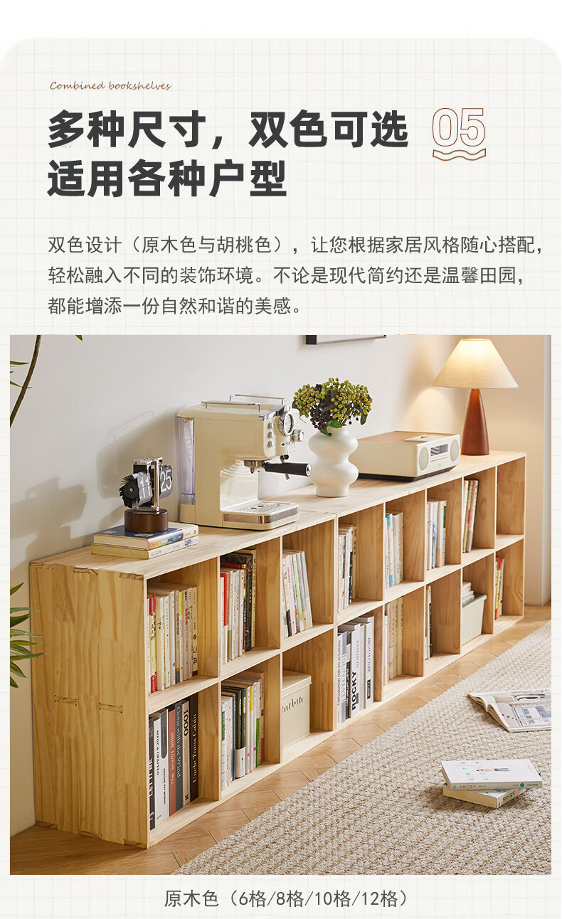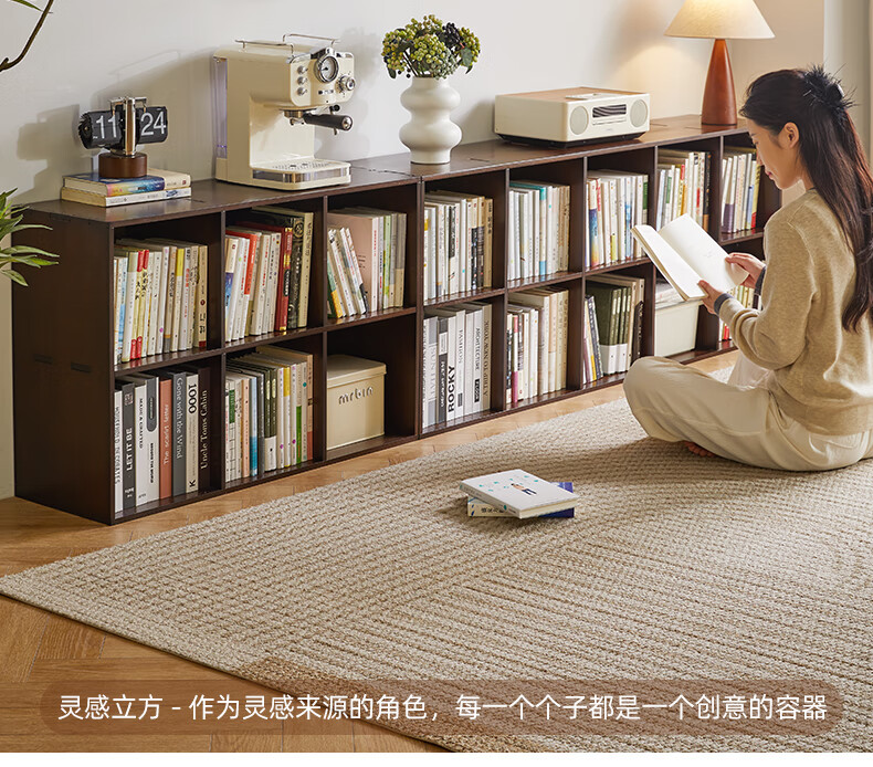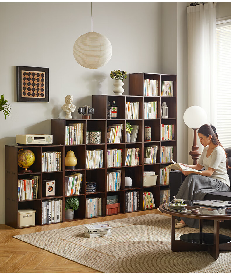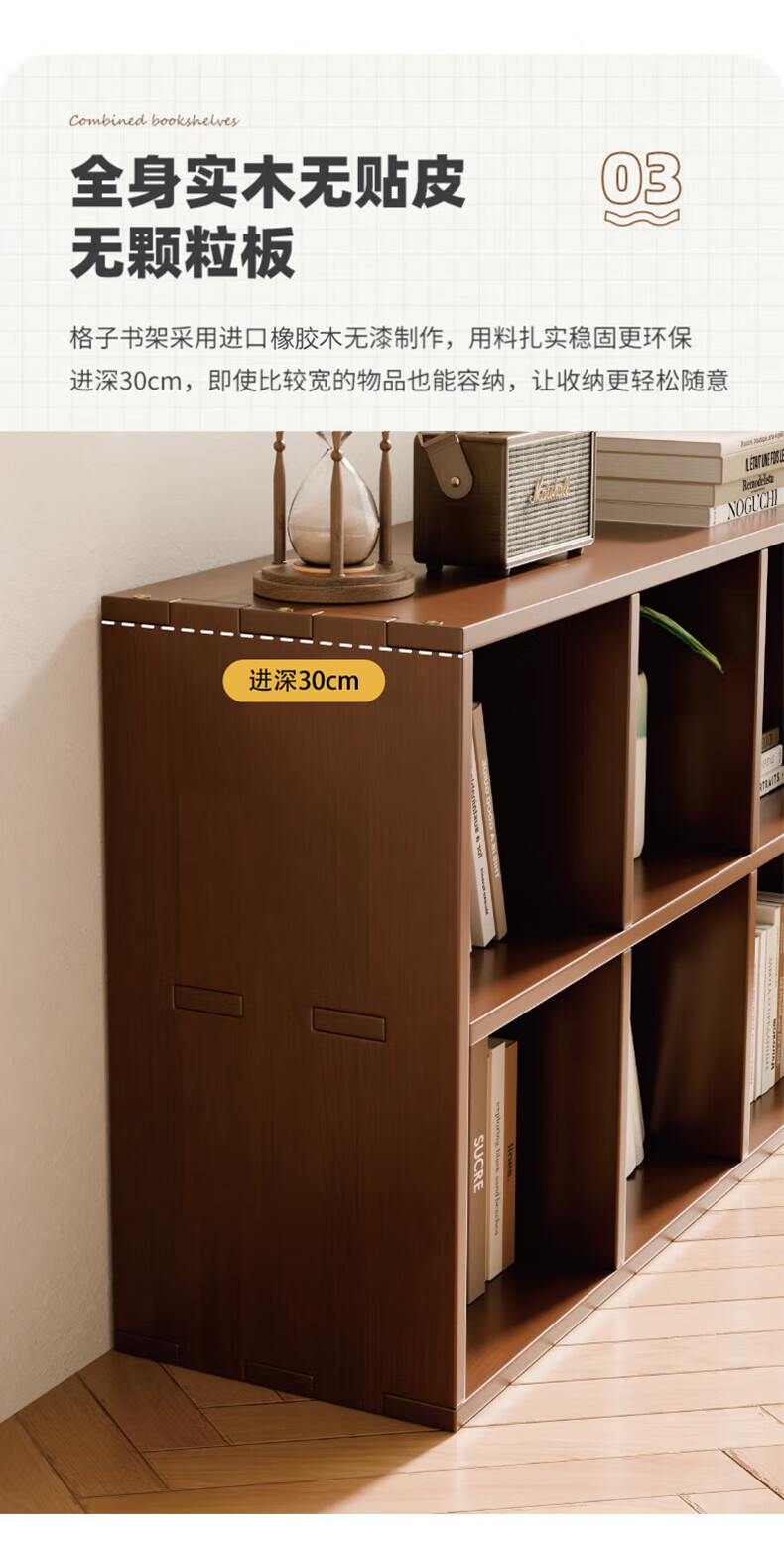Jiayi solid wood bookshelf floor-standing bookcase short bookcase study room grid cabinet living room storage rack stackable storage cabinet storage cabinet