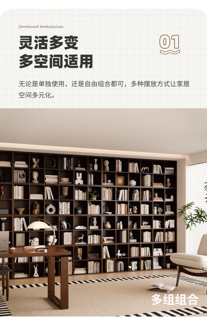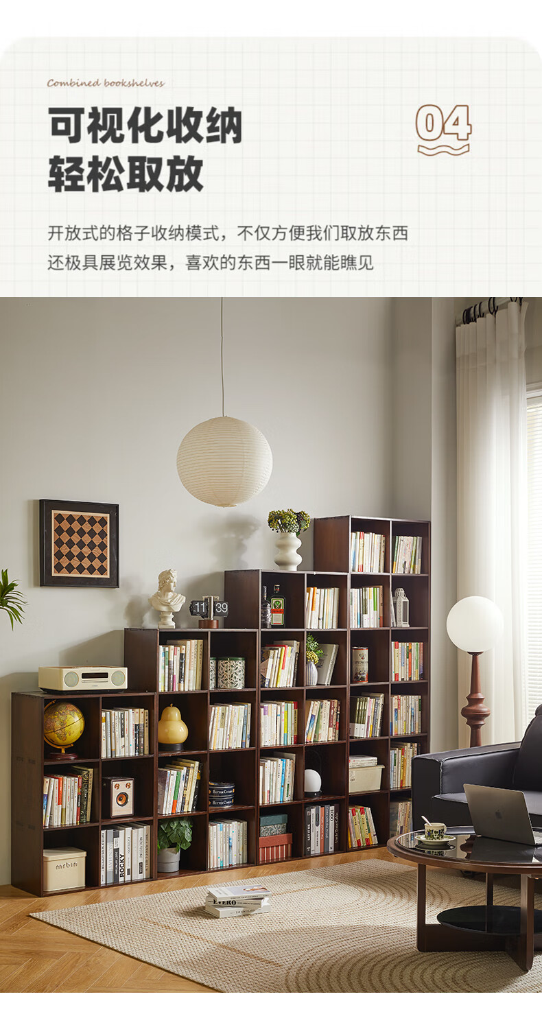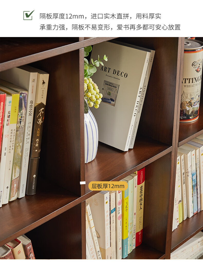 Jiayi solid wood bookshelf floor-standing bookcase short bookcase study room grid cabinet living room storage rack stackable storage cabinet storage cabinet