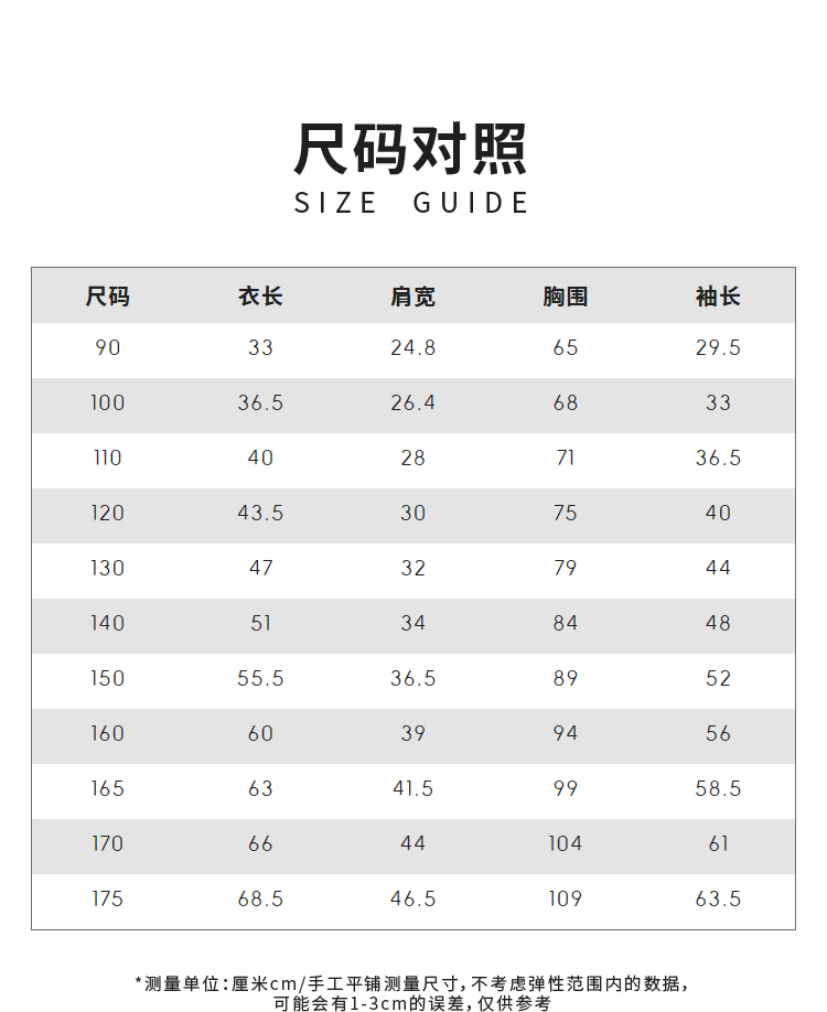 China (cm) 160-165/84-86 165-170 / 88-90 167-172 / 92-96 168-173 / 98-102 170-176 / 106-110