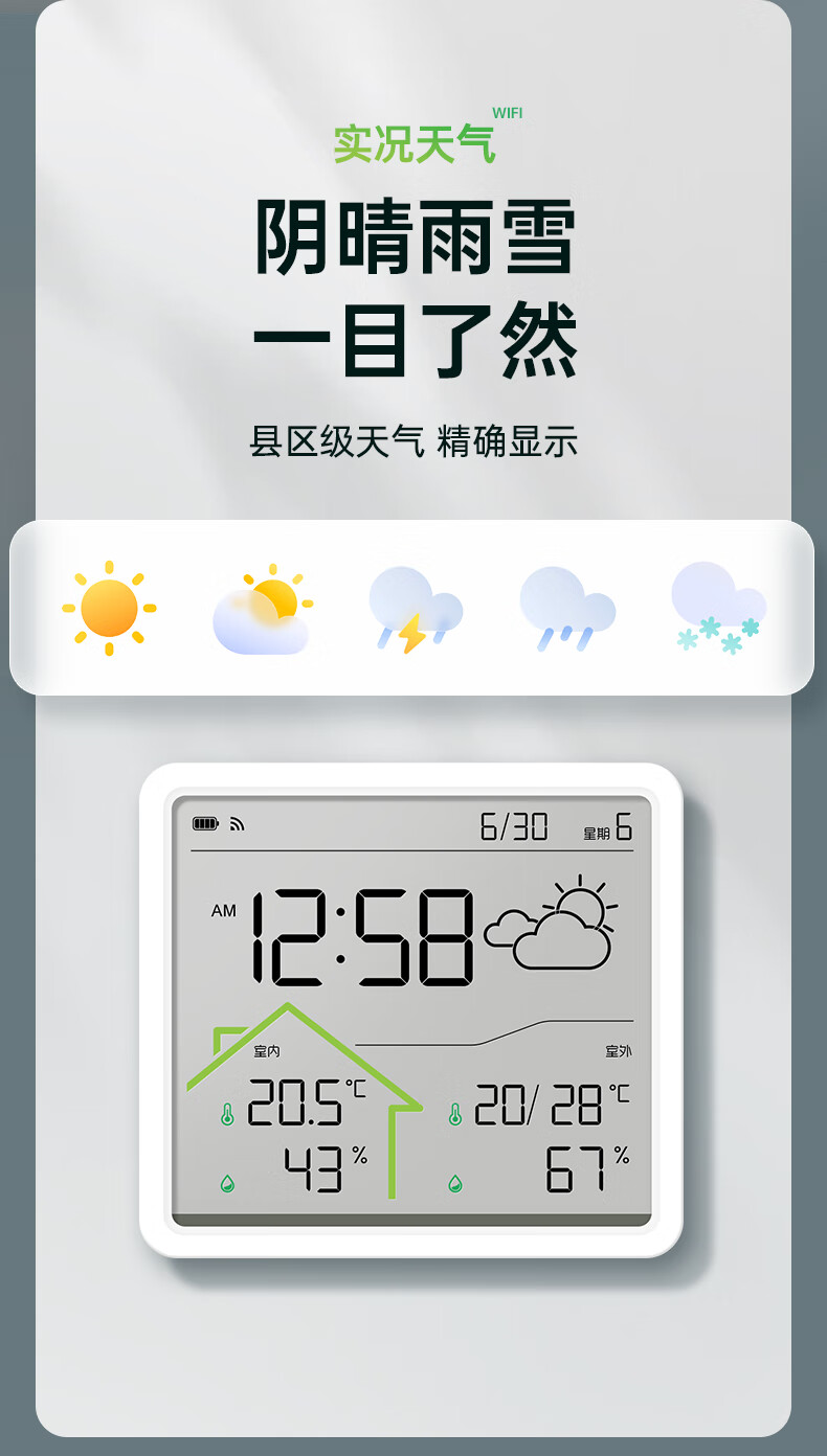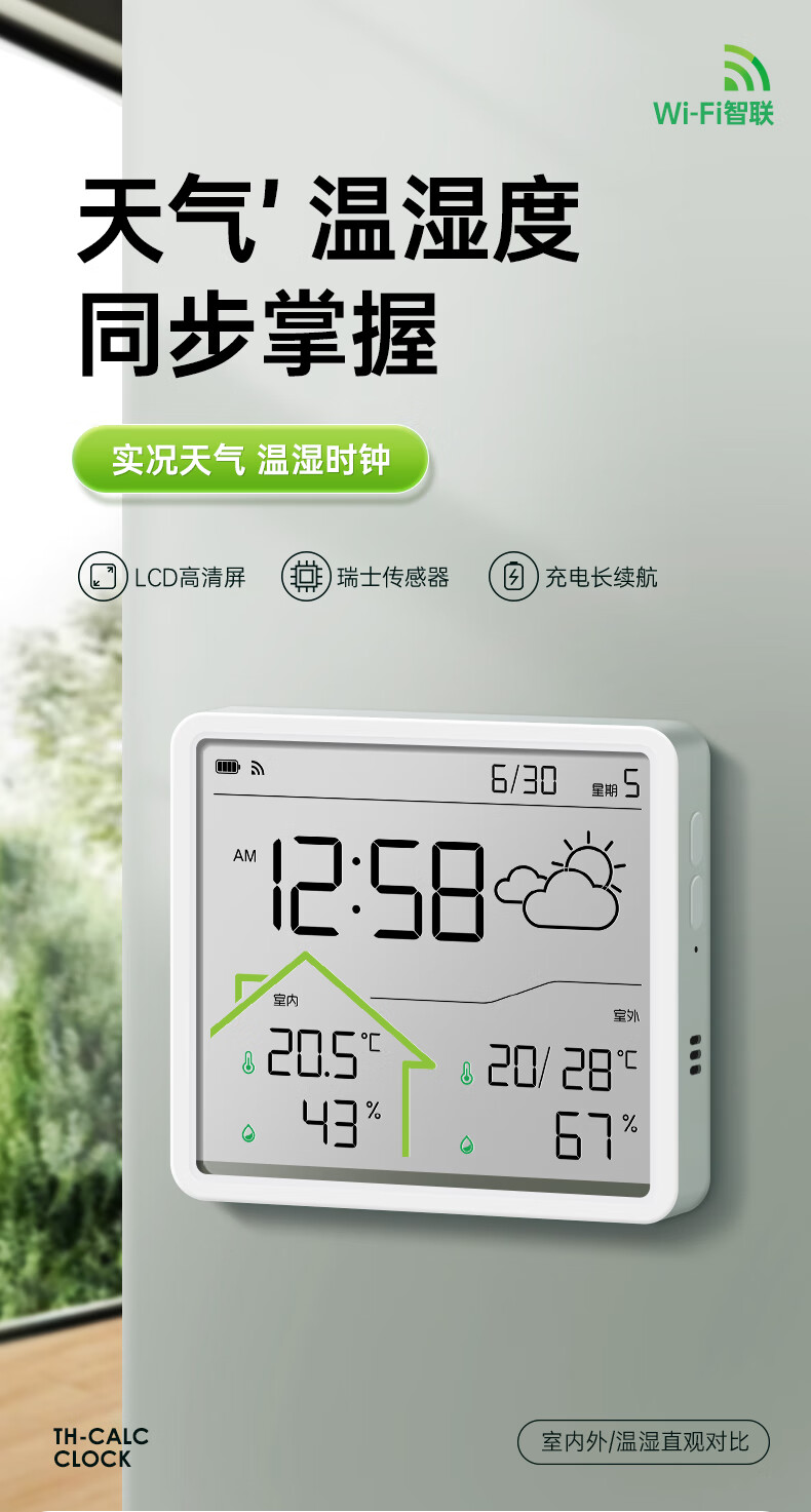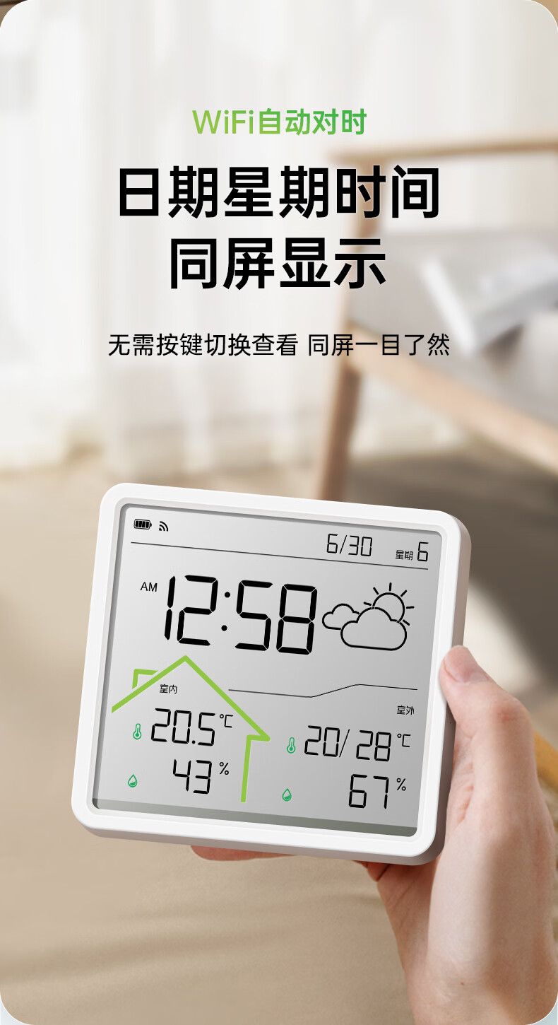 Max temperature and humidity meter clock wifi network real-time monitoring accurate home indoor baby room LCD multi-function hanging watch digital clock W551 school season