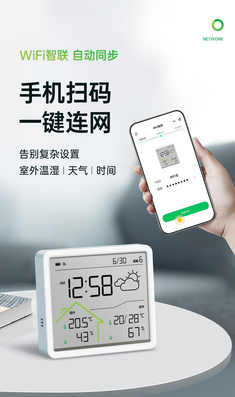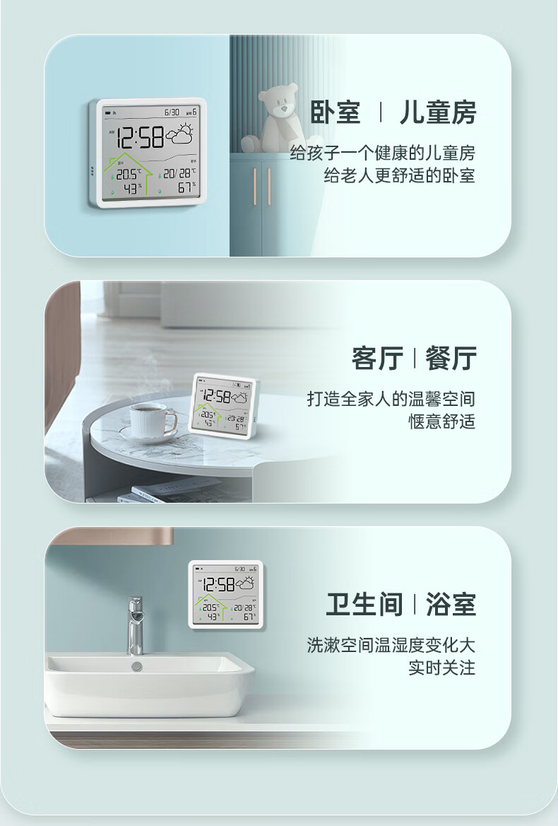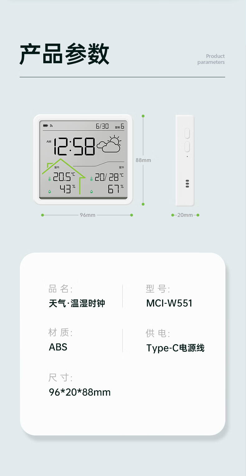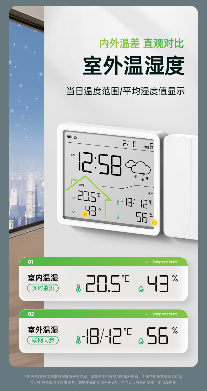 Max temperature and humidity meter clock wifi network real-time monitoring accurate home indoor baby room LCD multi-function hanging watch digital clock W551 school season