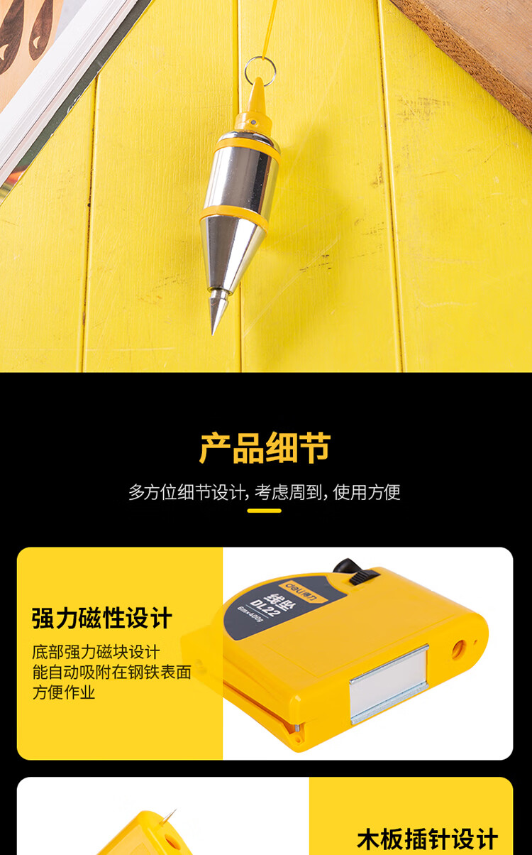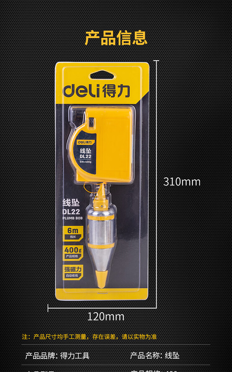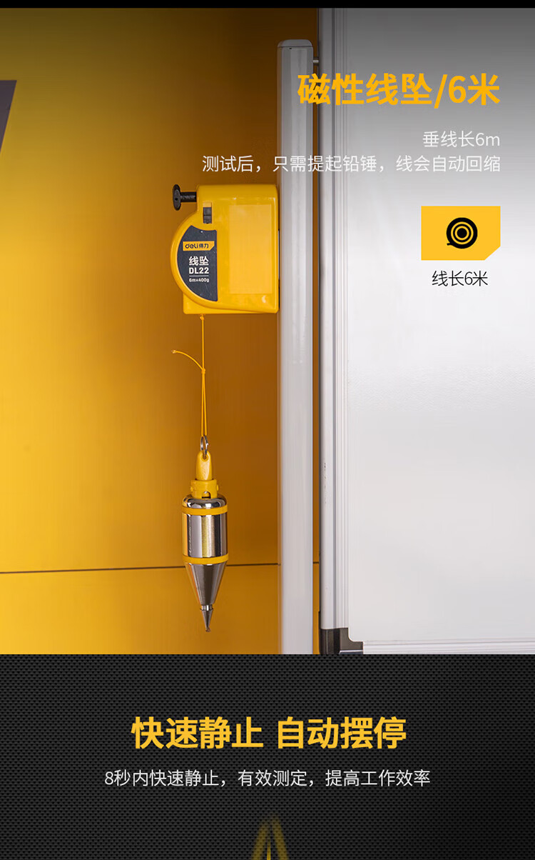 Deli magnetic line drop hammer magnetic vertical hammer decoration pendant automatic line take-up 6 meters DL22