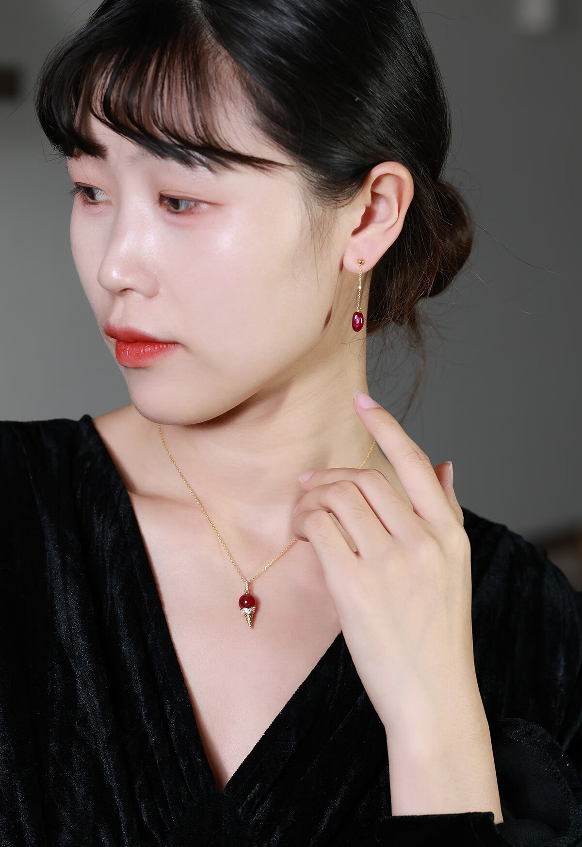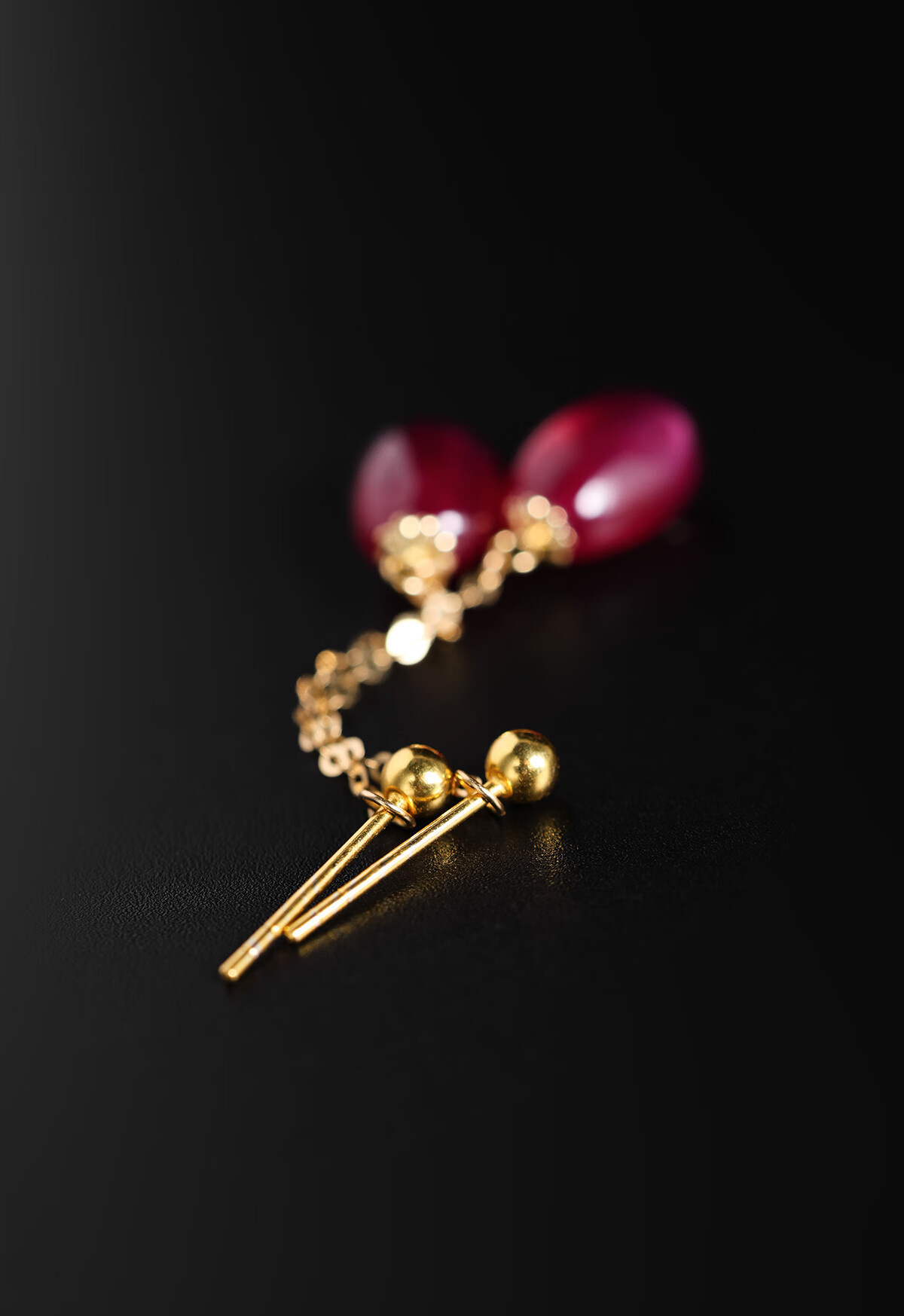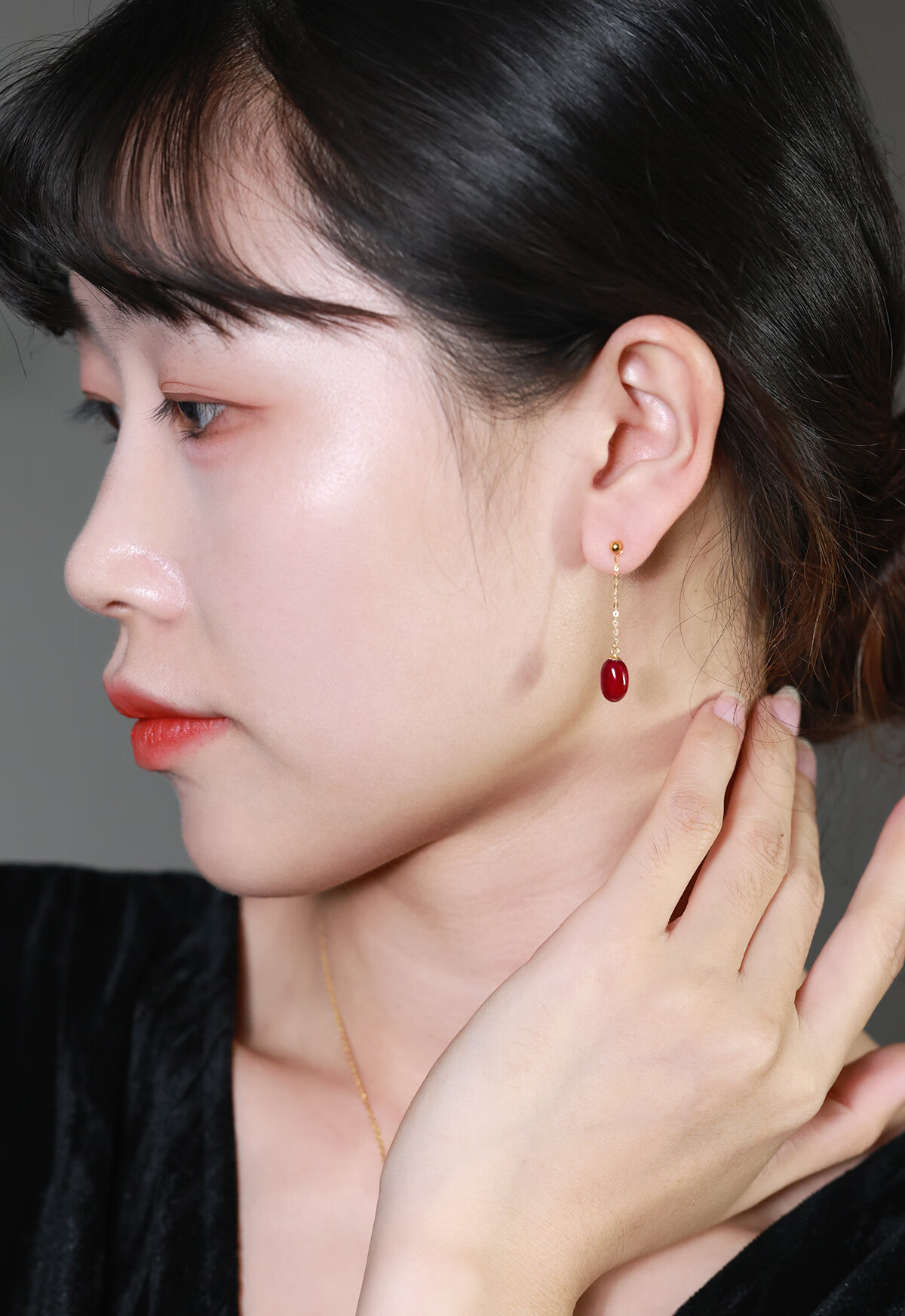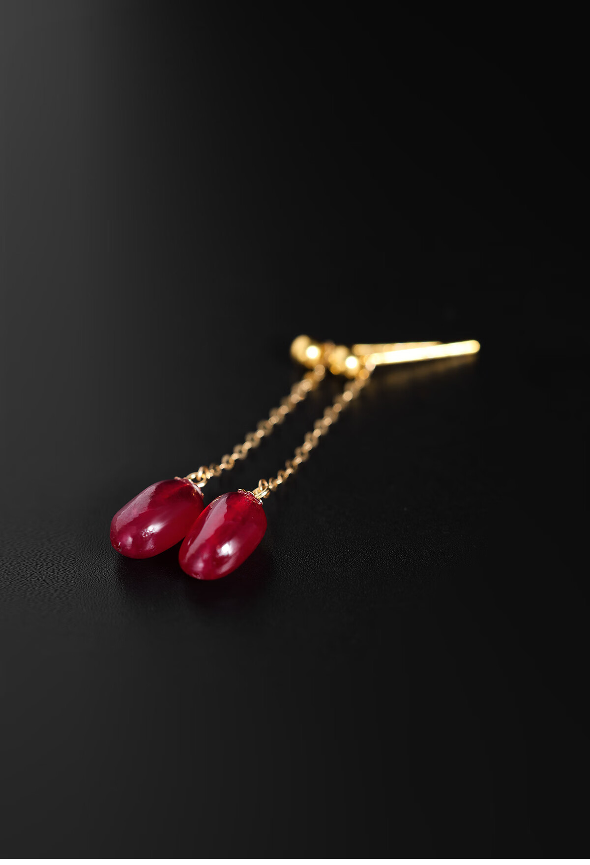 RUOHUA Raspberry 5.5-6.5mm Plain Ruby Earrings Women's Multi-Wear Tassel Colorful Earrings Birthday Gift