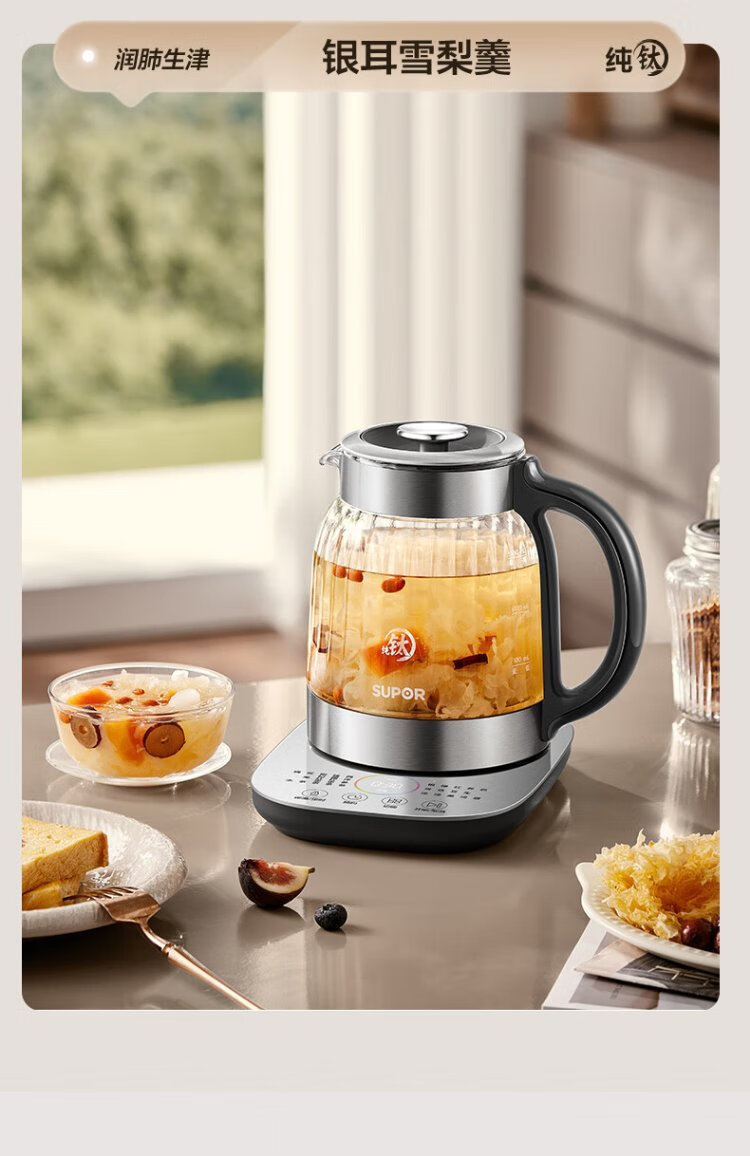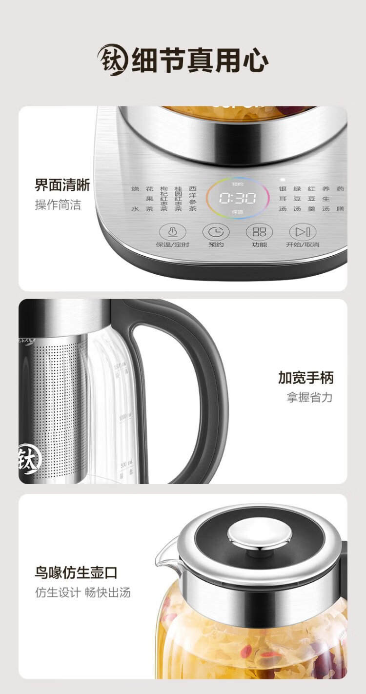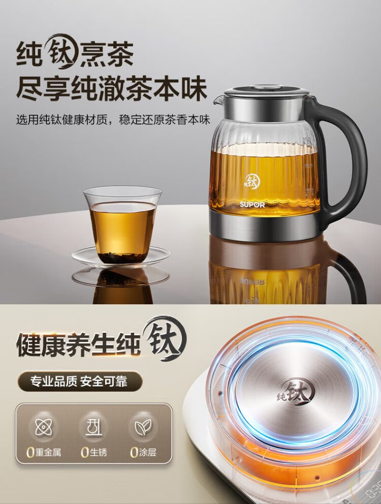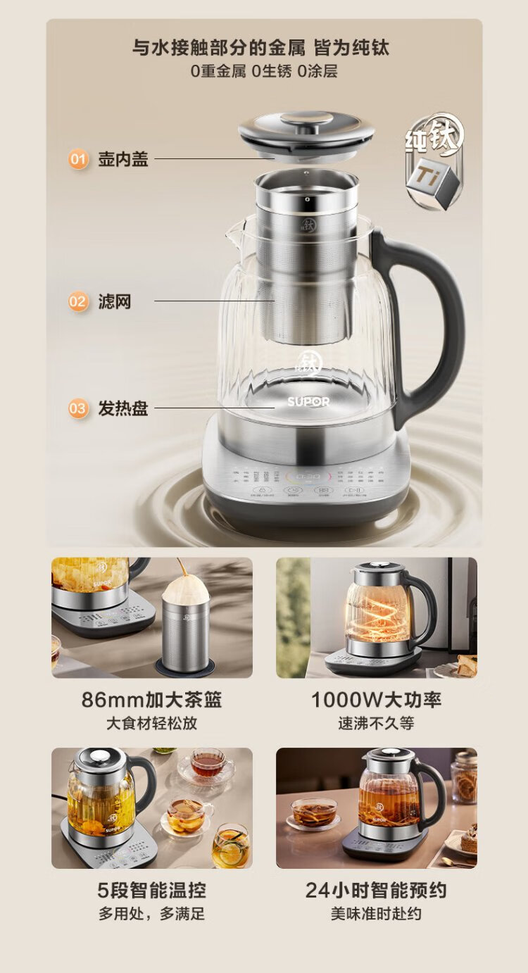 SUPOR 1.5L pure titanium health kettle, tea kettle, kettle, constant temperature tea kettle, enlarged filter, electric kettle, thermal insulation flower tea kettle, 0 glue SW-15YQ62