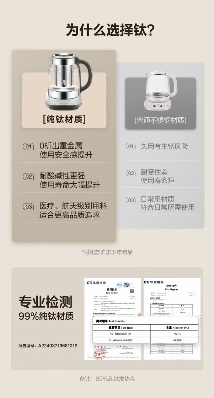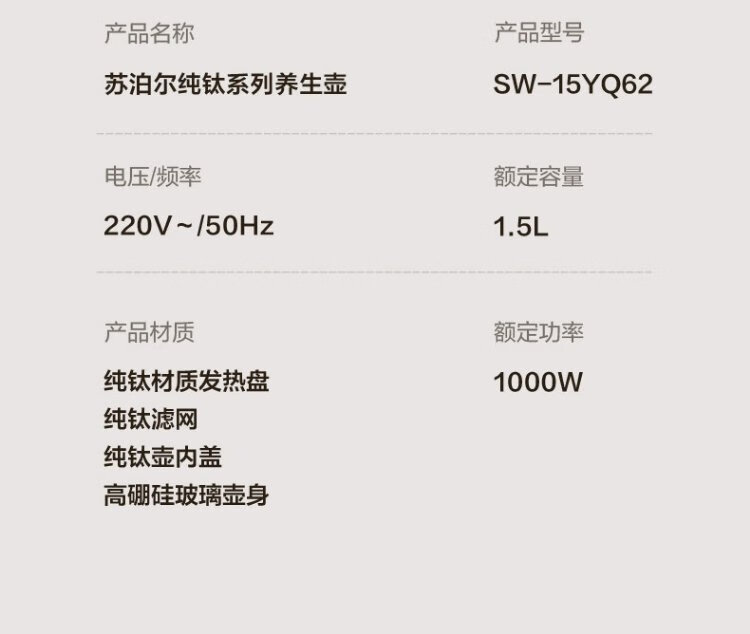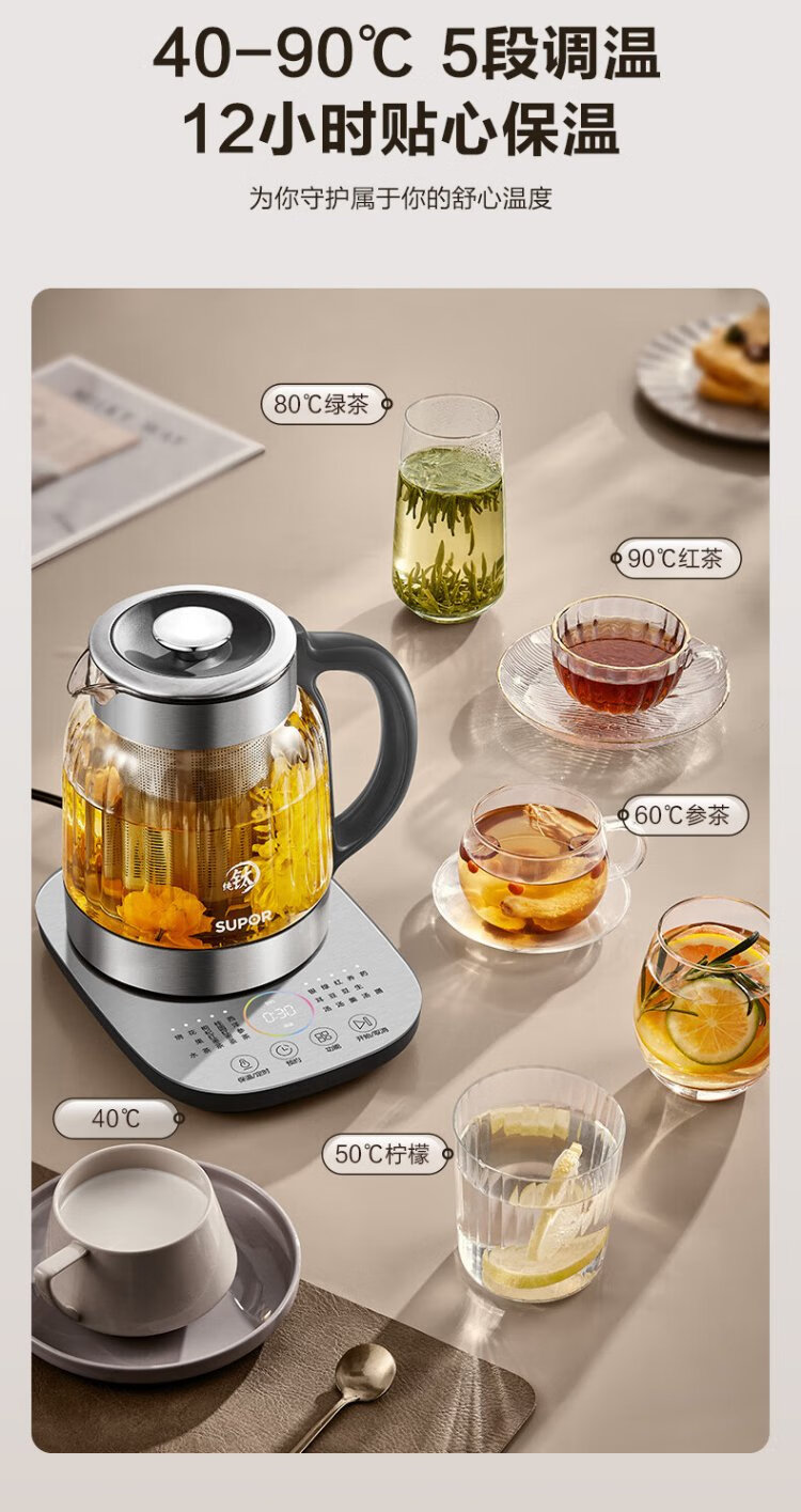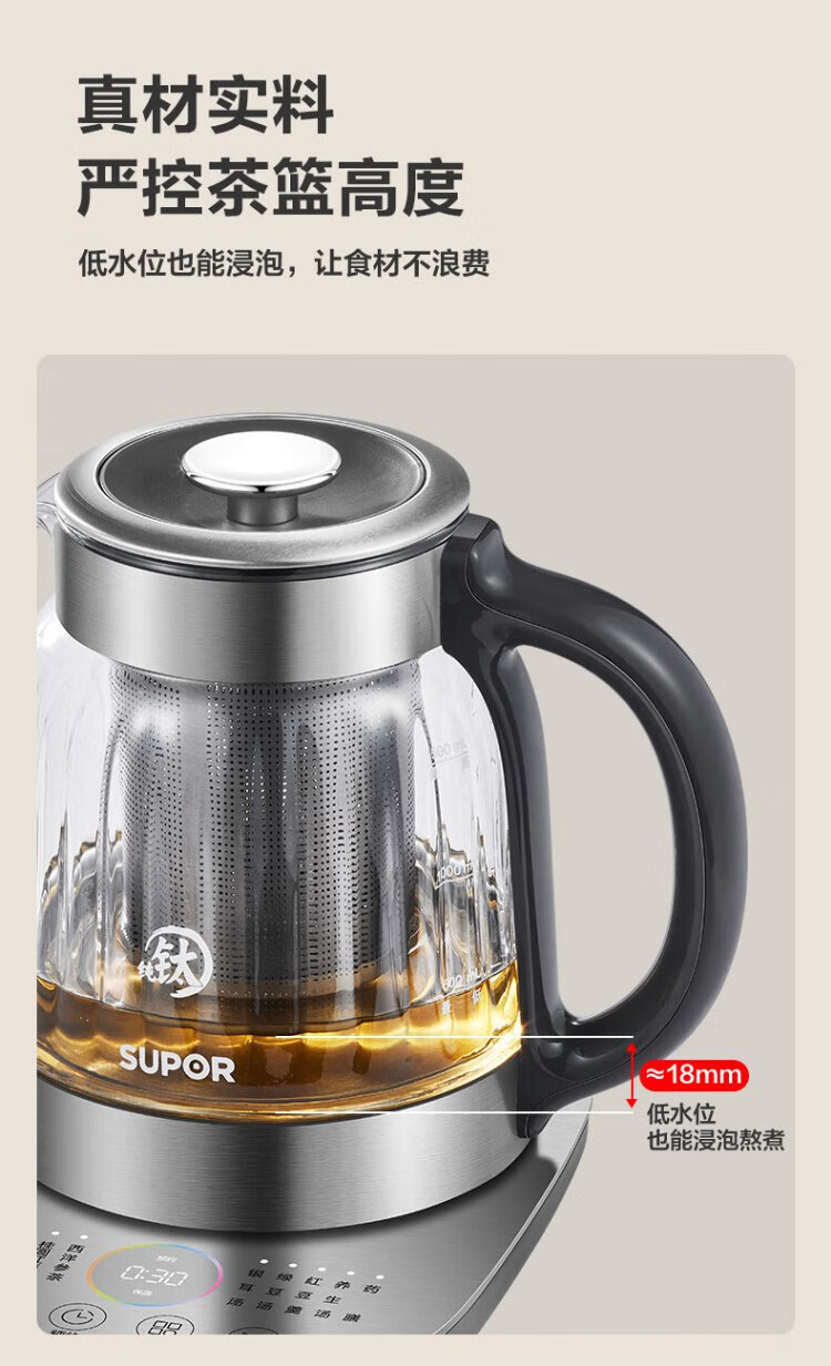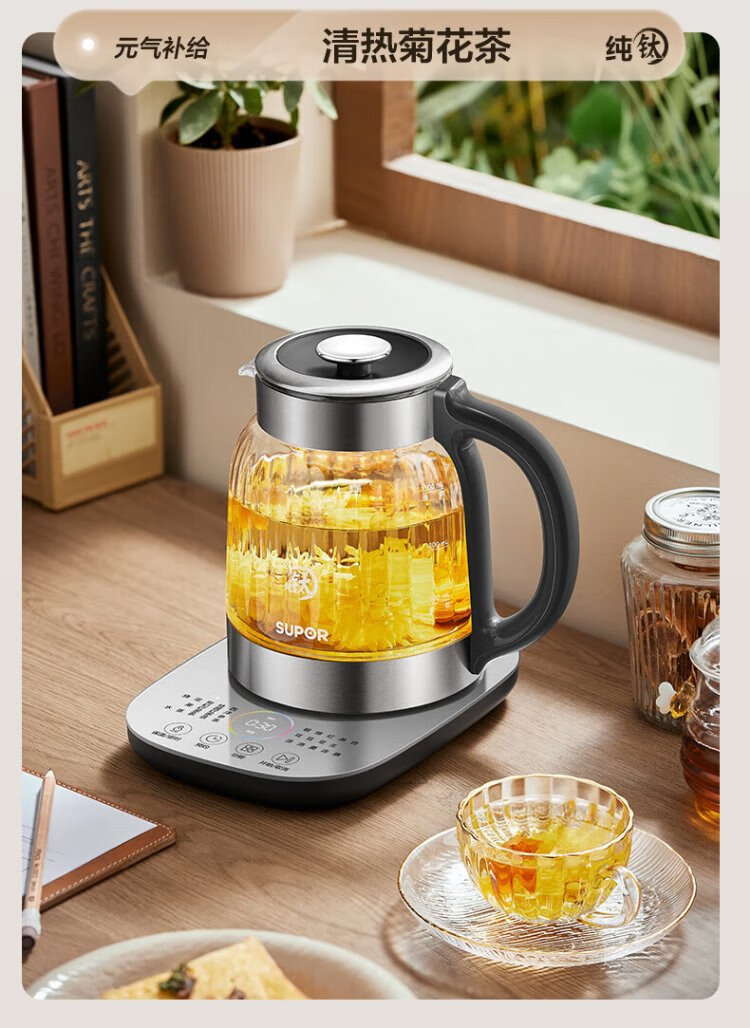 SUPOR 1.5L pure titanium health kettle, tea kettle, kettle, constant temperature tea kettle, enlarged filter, electric kettle, thermal insulation flower tea kettle, 0 glue SW-15YQ62