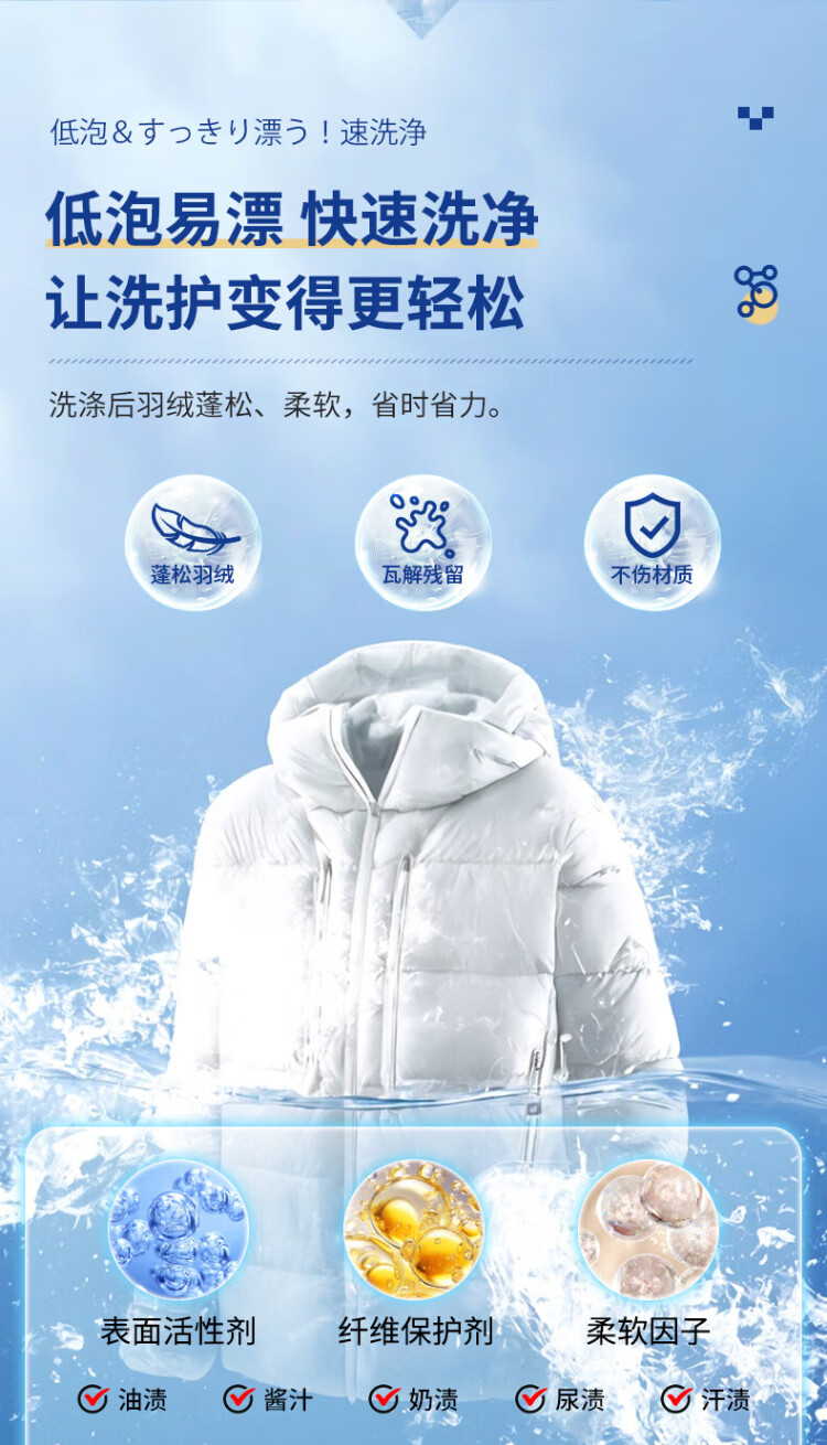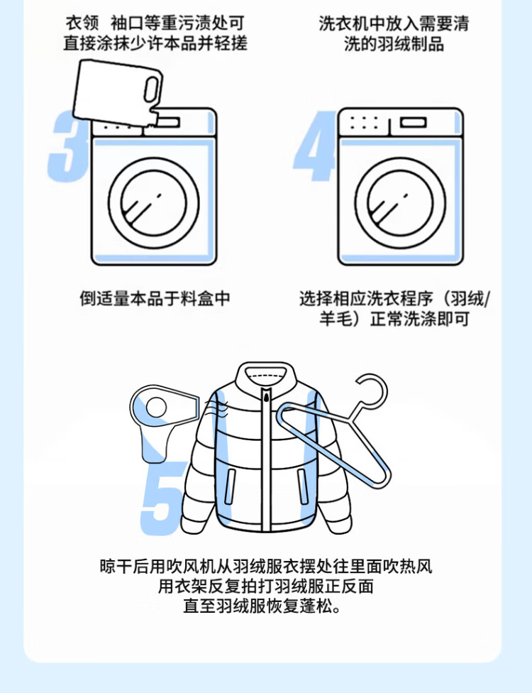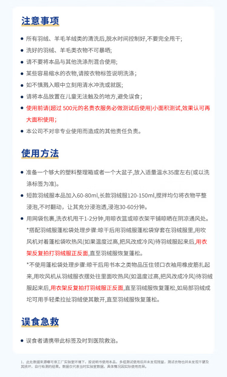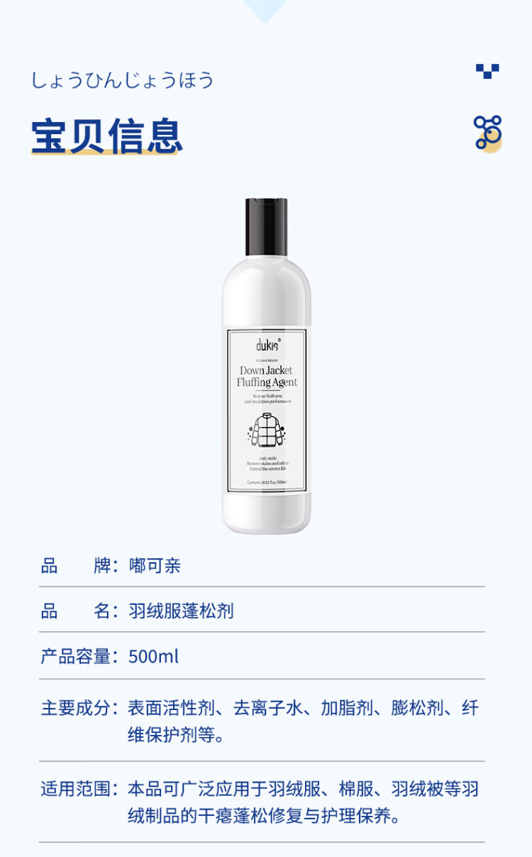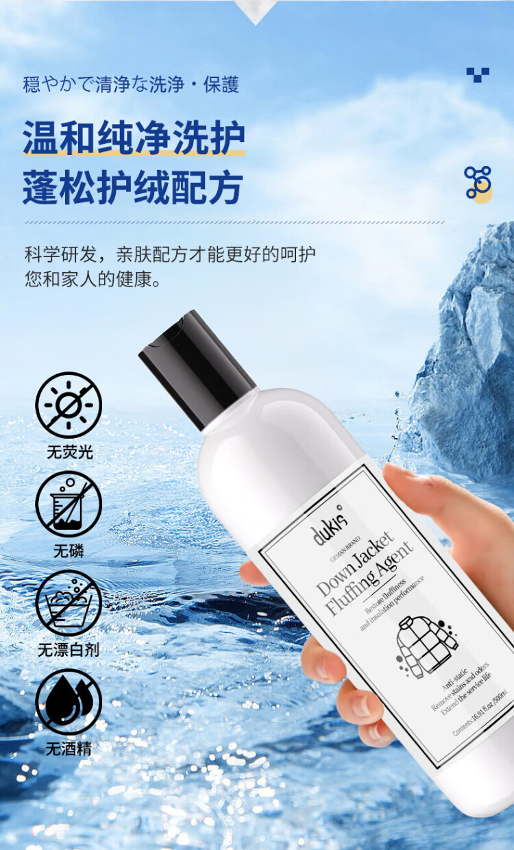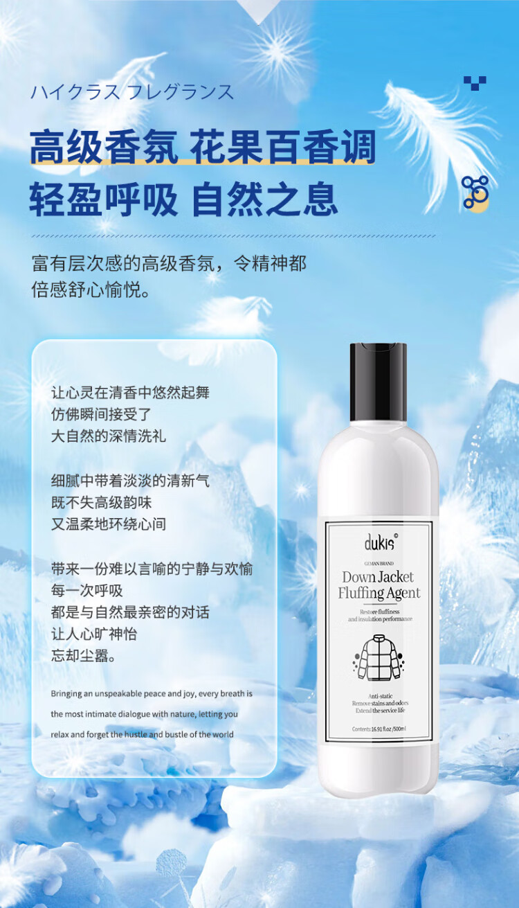 Dukki down jacket fluffy detergent washing machine special fluffy cleaning agent down machine washable anti-caking artifact 500mL