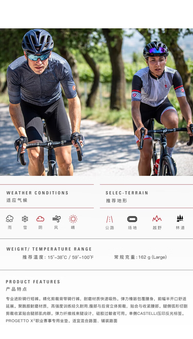 CASTELLI Scorpion Men's Summer Professional Cycling Pants Quick-Drying Breathable X2 Cushion Cycling Shorts 010 Black XL