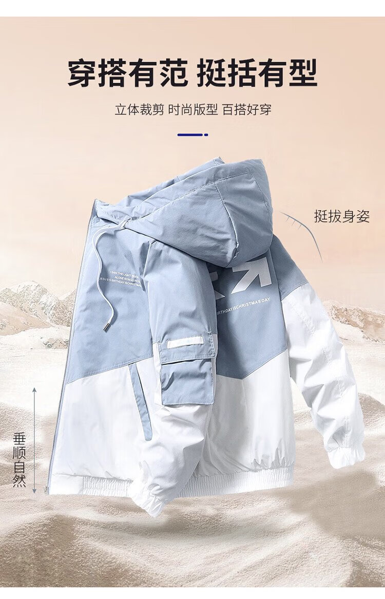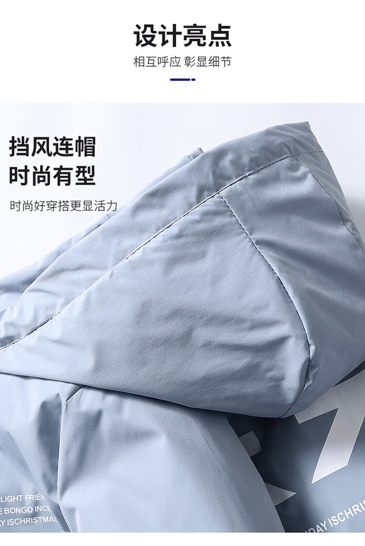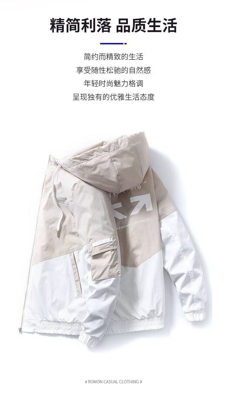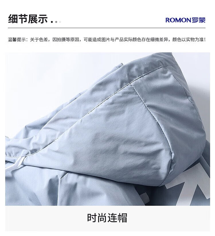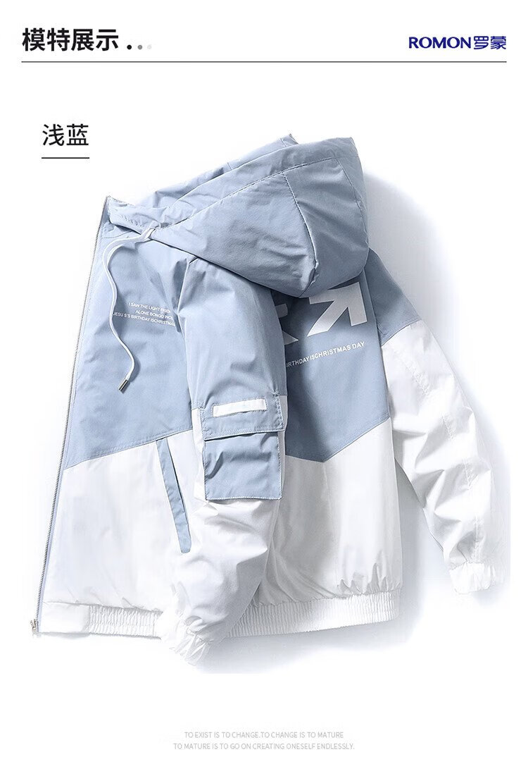 ROMON Jacket Men's Spring and Autumn Jacket Men's Hooded Trendy Casual Contrast Color Top Men's Light Blue XL