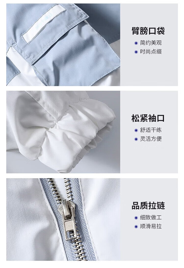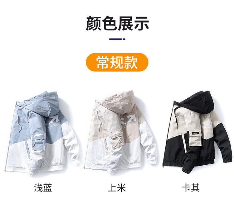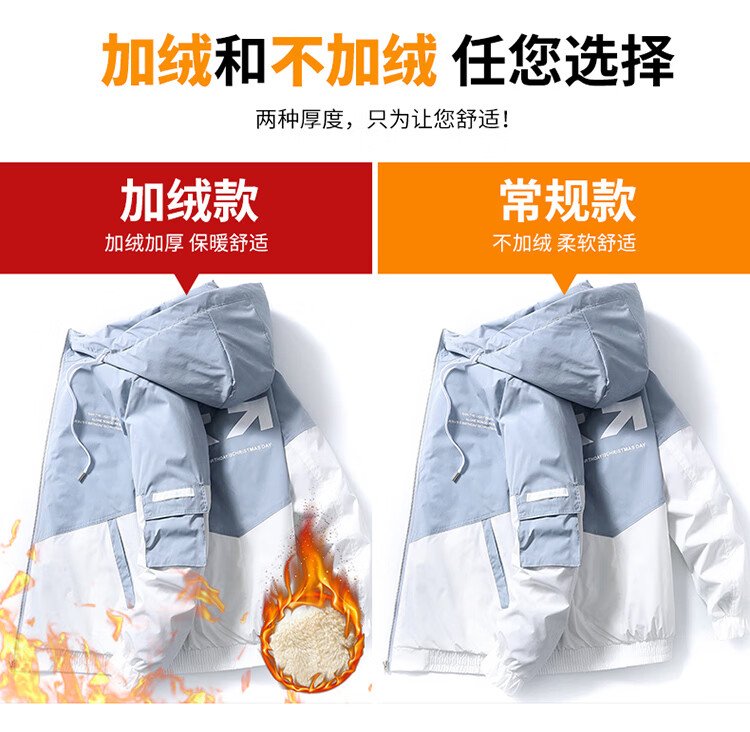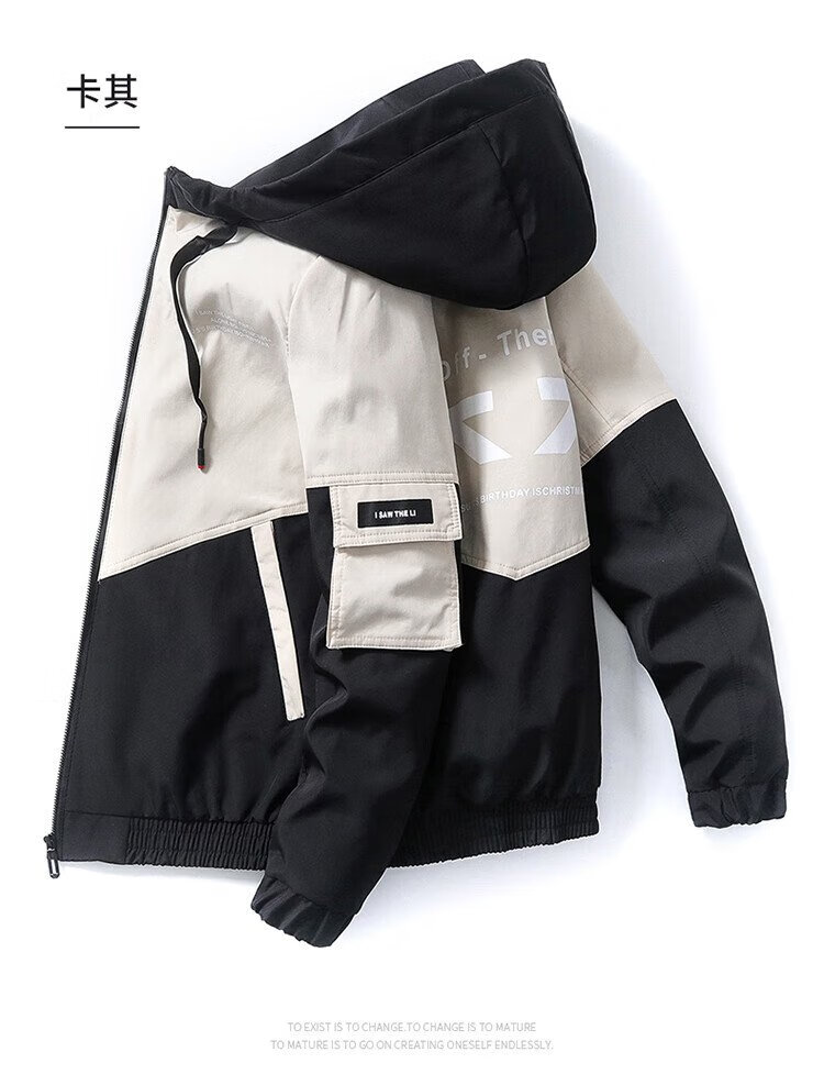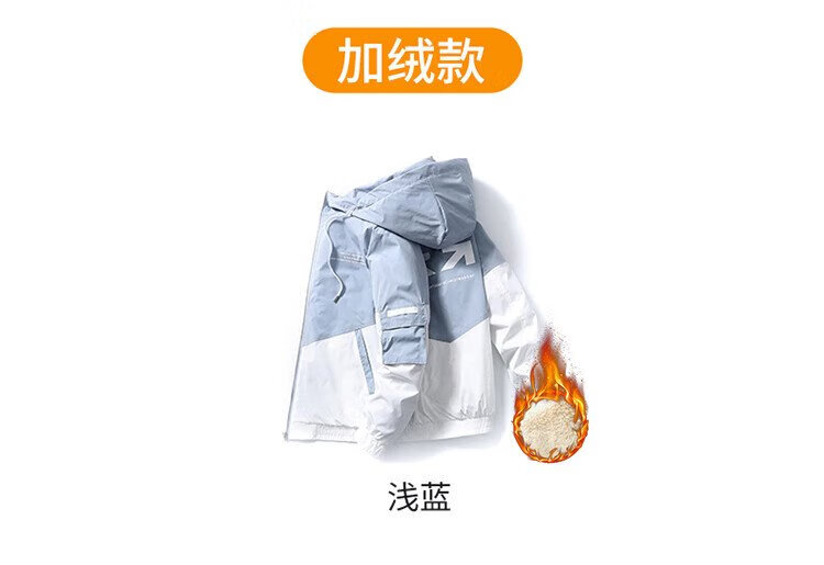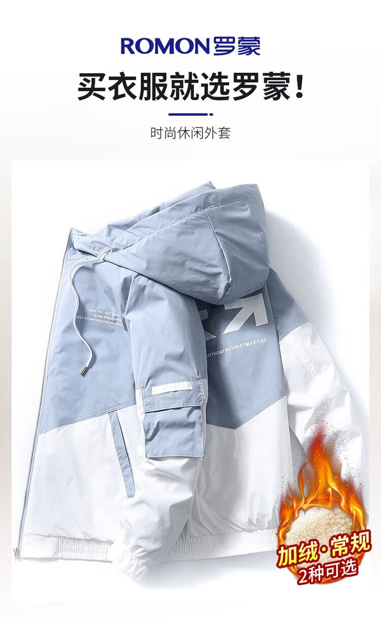 ROMON Jacket Men's Spring and Autumn Jacket Men's Hooded Trendy Casual Contrast Color Top Men's Light Blue XL