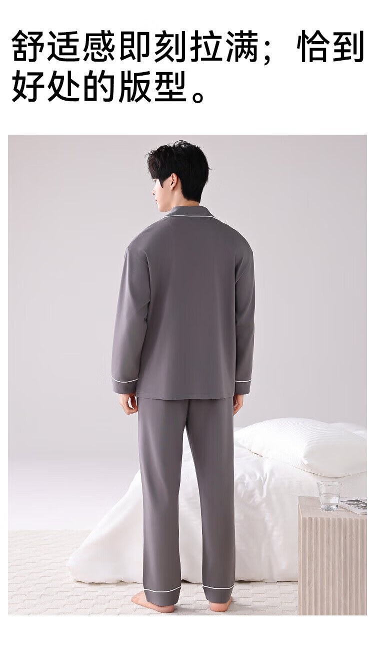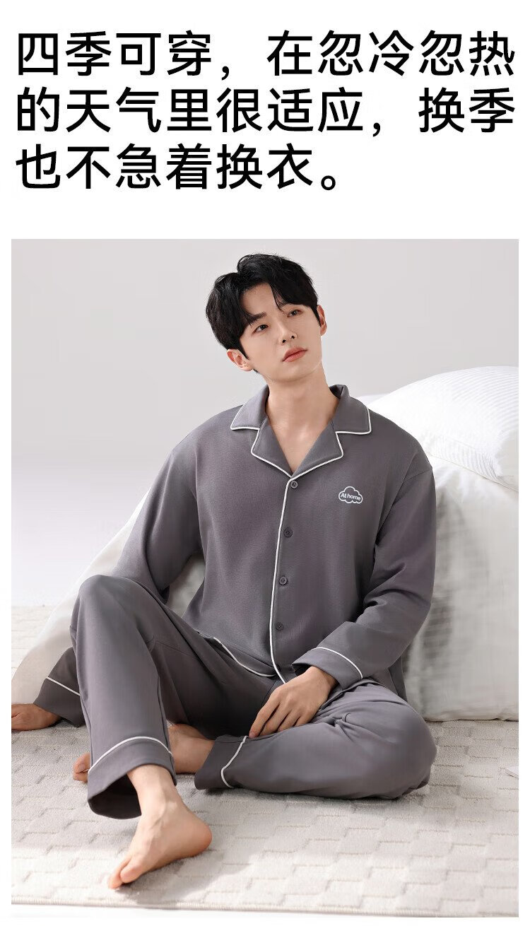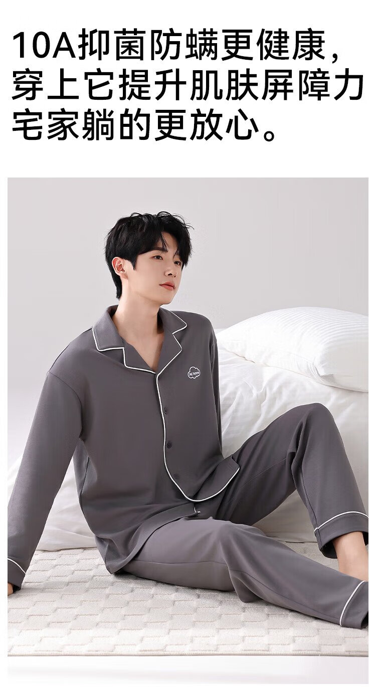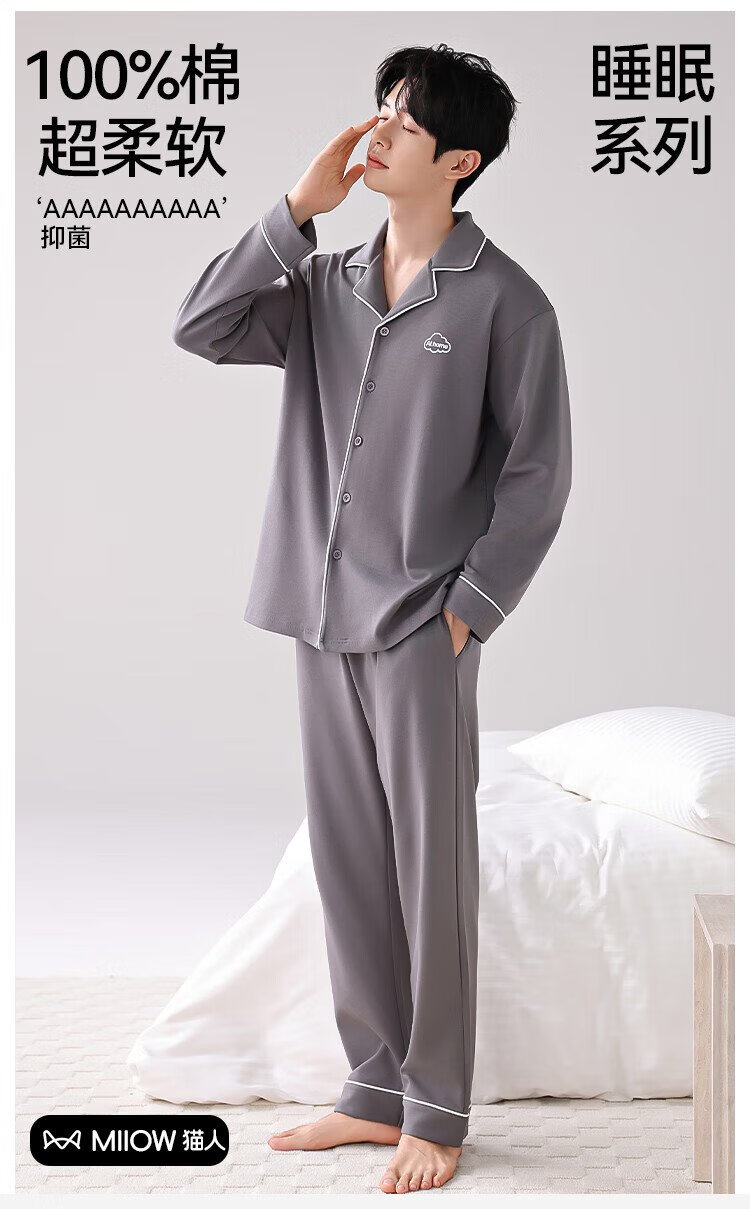 Catman 10A level antibacterial and anti-mite pajamas for men spring and autumn pure cotton breathable loose casual home wear deep space gray 2XL