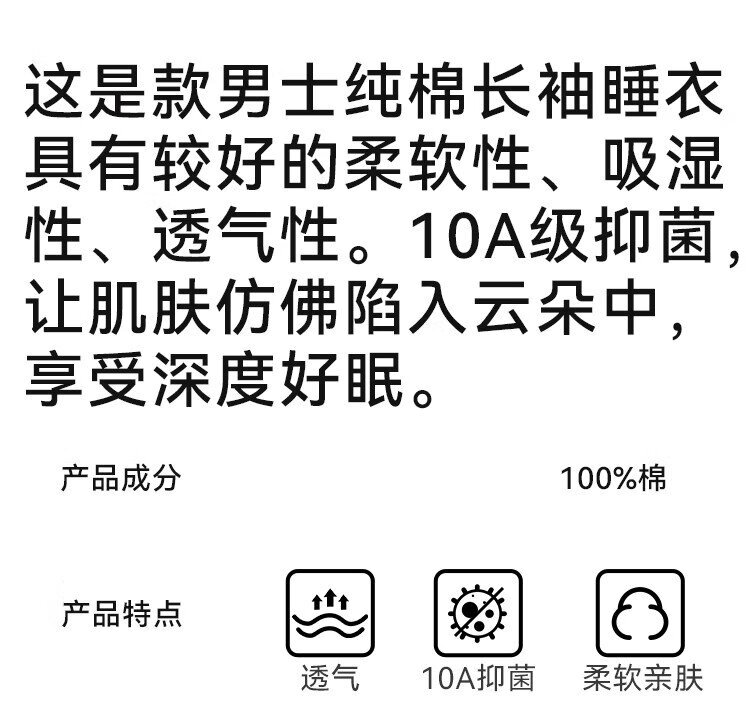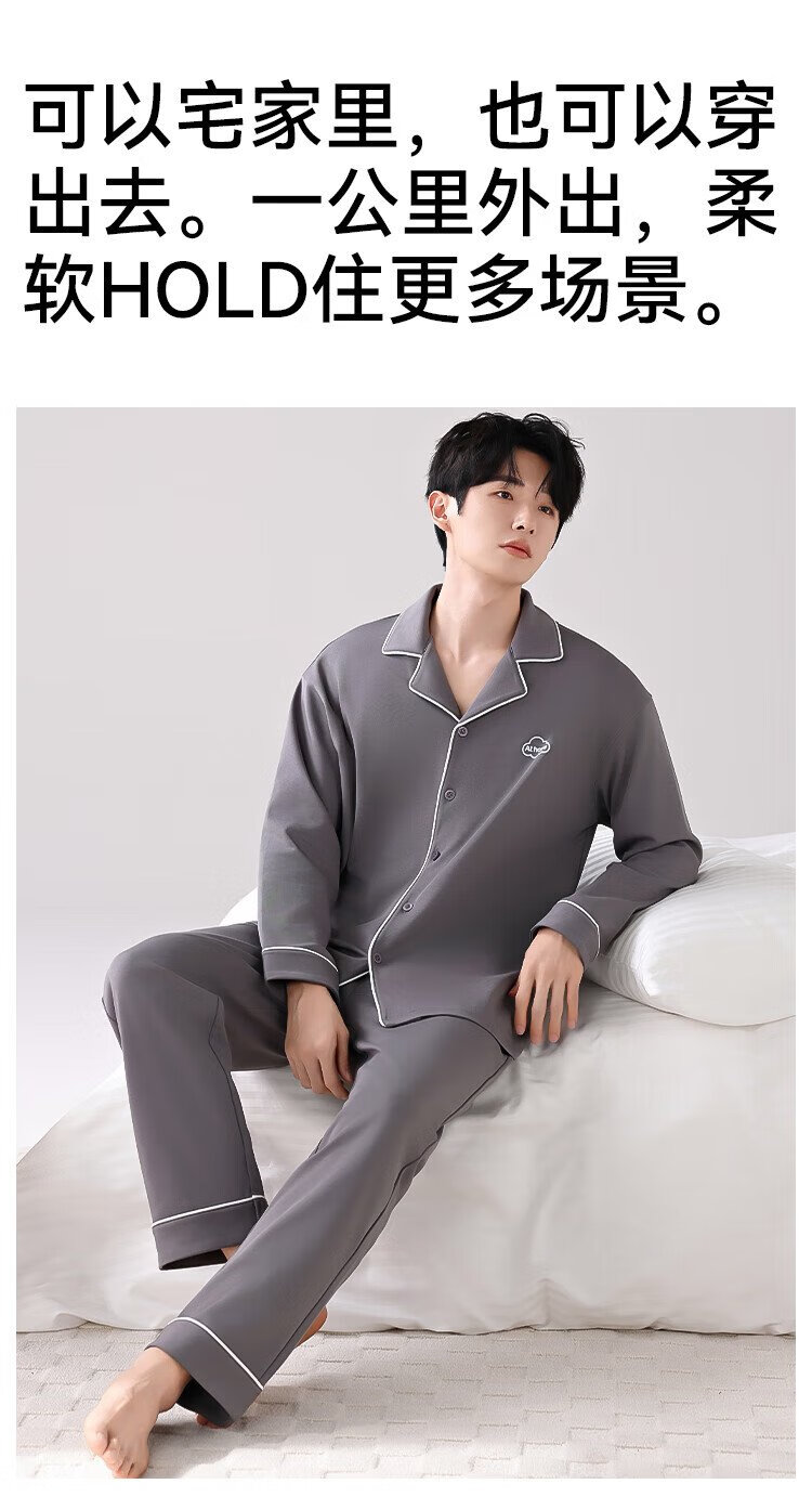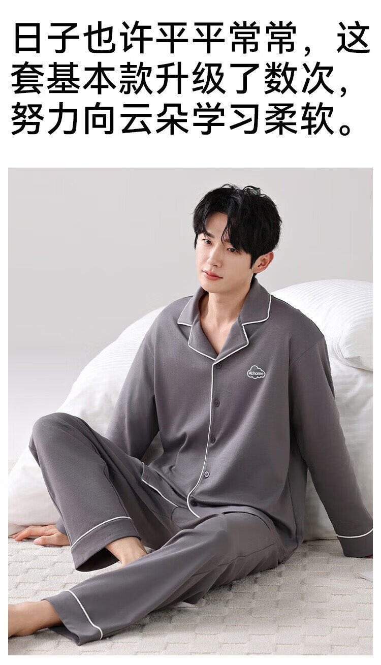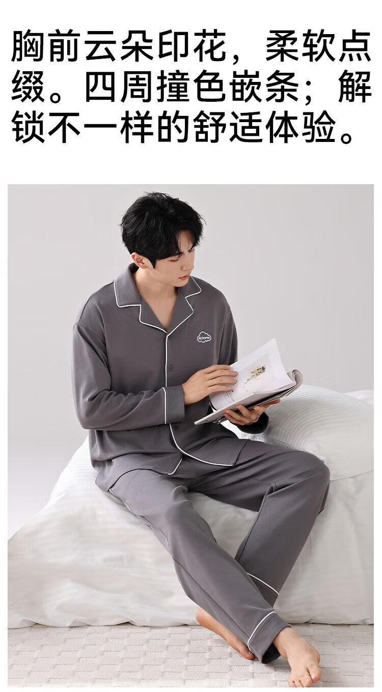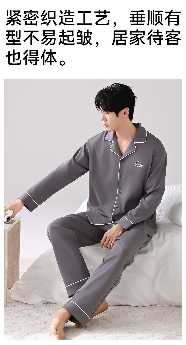 Catman 10A level antibacterial and anti-mite pajamas for men spring and autumn pure cotton breathable loose casual home wear deep space gray 2XL