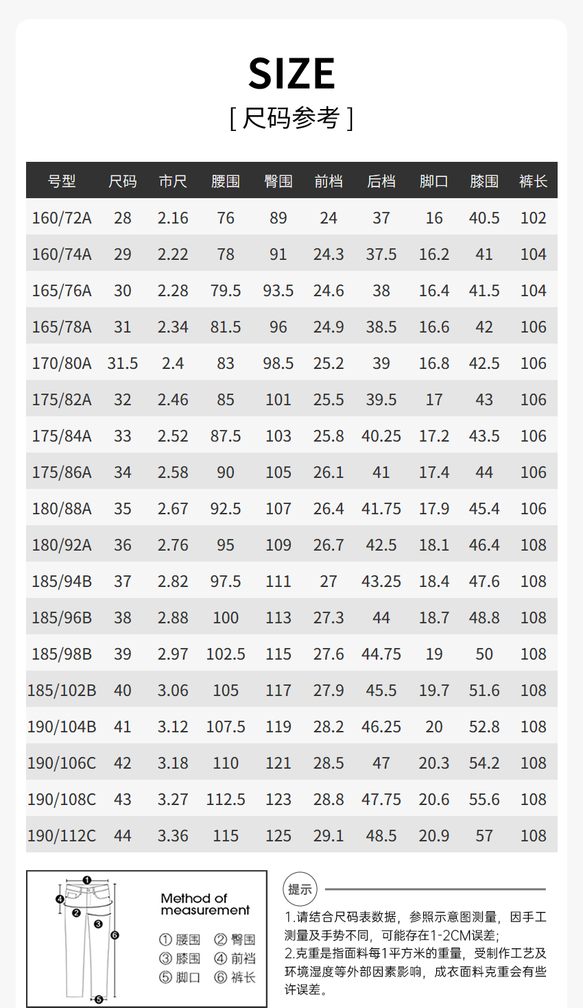 China (cm) 160-165/84-86 165-170 / 88-90 167-172 / 92-96 168-173 / 98-102 170-176 / 106-110