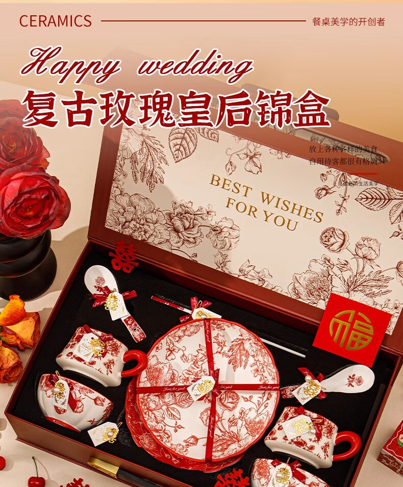 Persson wedding gift for the bride and groom, engagement gift for best friend, 10-piece set of bowls, plates, chopsticks and tableware