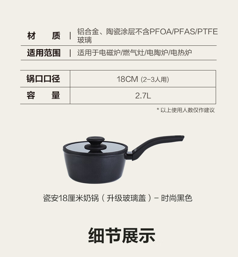 Fissler porcelain milk pot 18cm ceramic non-stick household milk pot for one person baby food supplement breakfast instant noodle pot