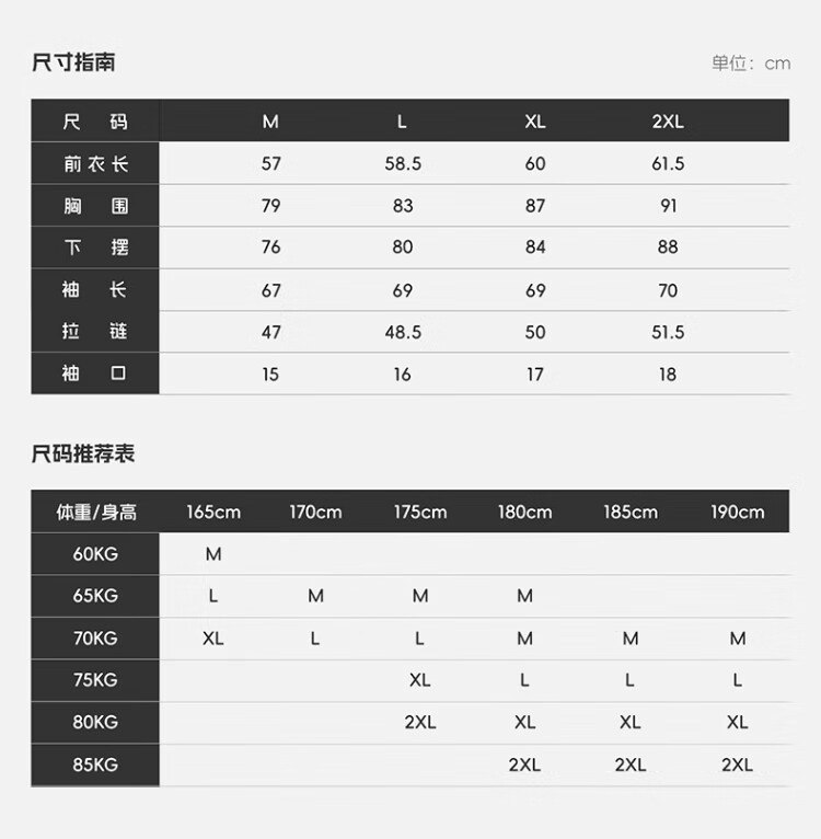 China (cm) 165 / 88-90 170 / 96-98 175 / 108-110 180 / 118-122 185 / 126-130
