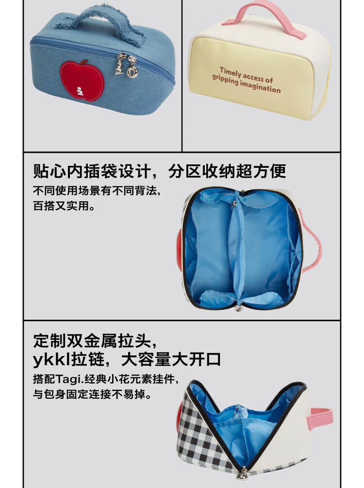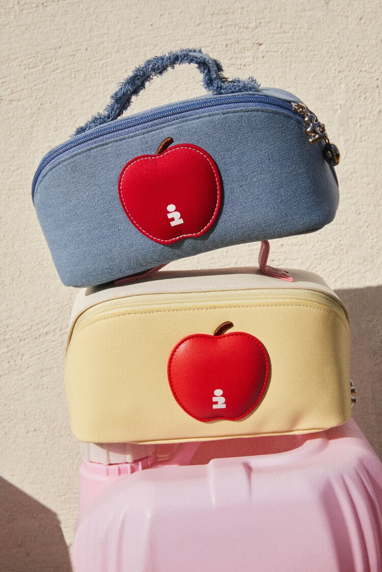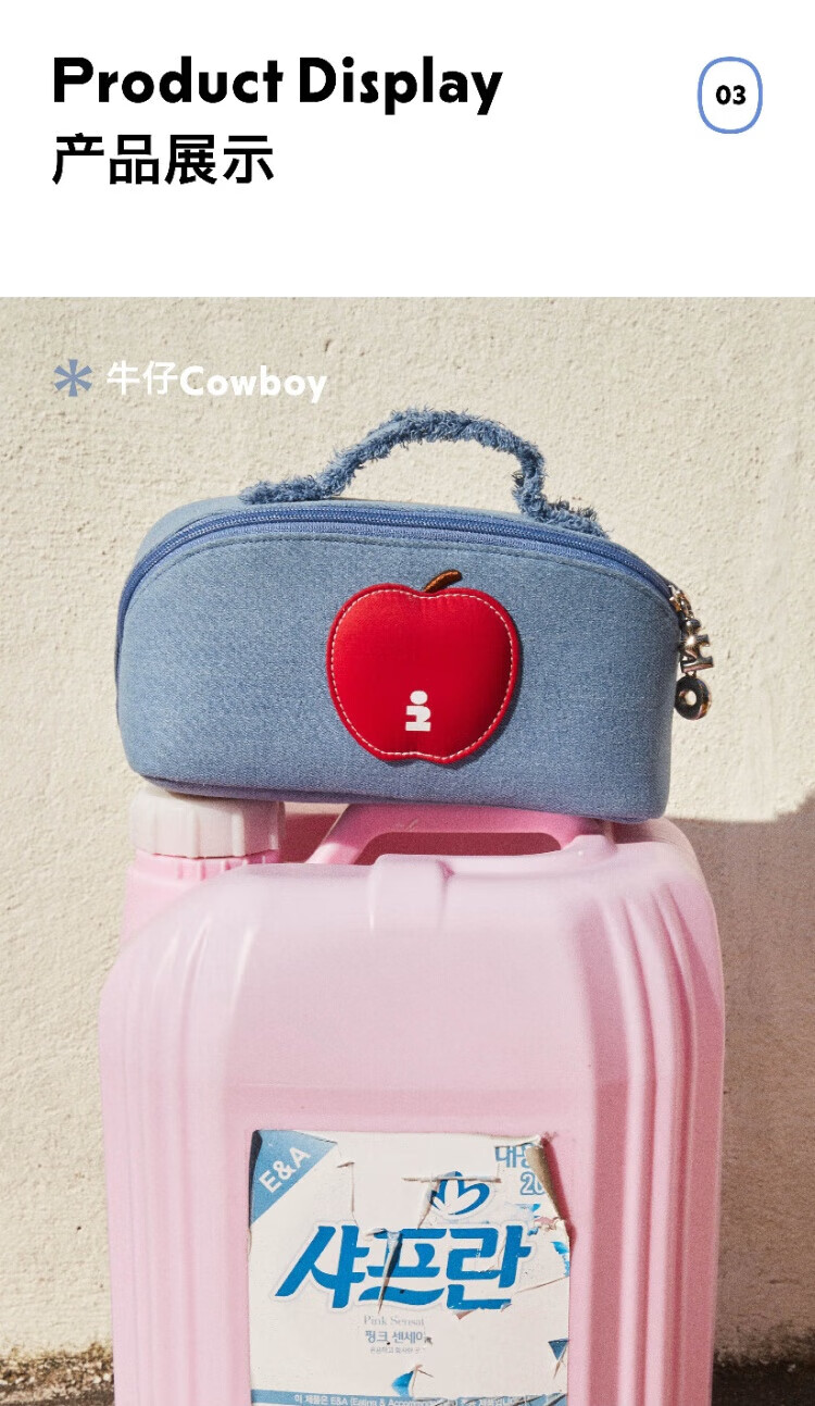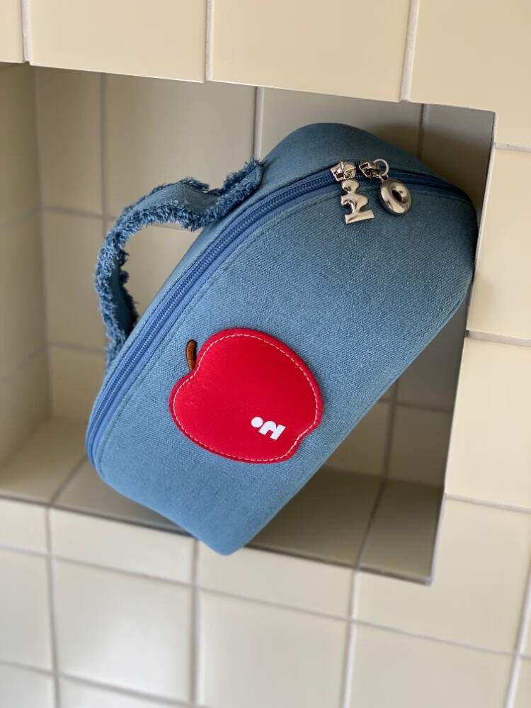 Tagi.<i>Imagine Apple bulging waterproof cosmetic bag denim leather toiletry bag travel bag storage bag-denim
