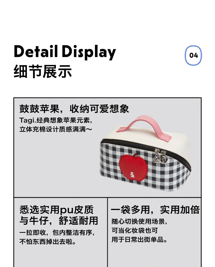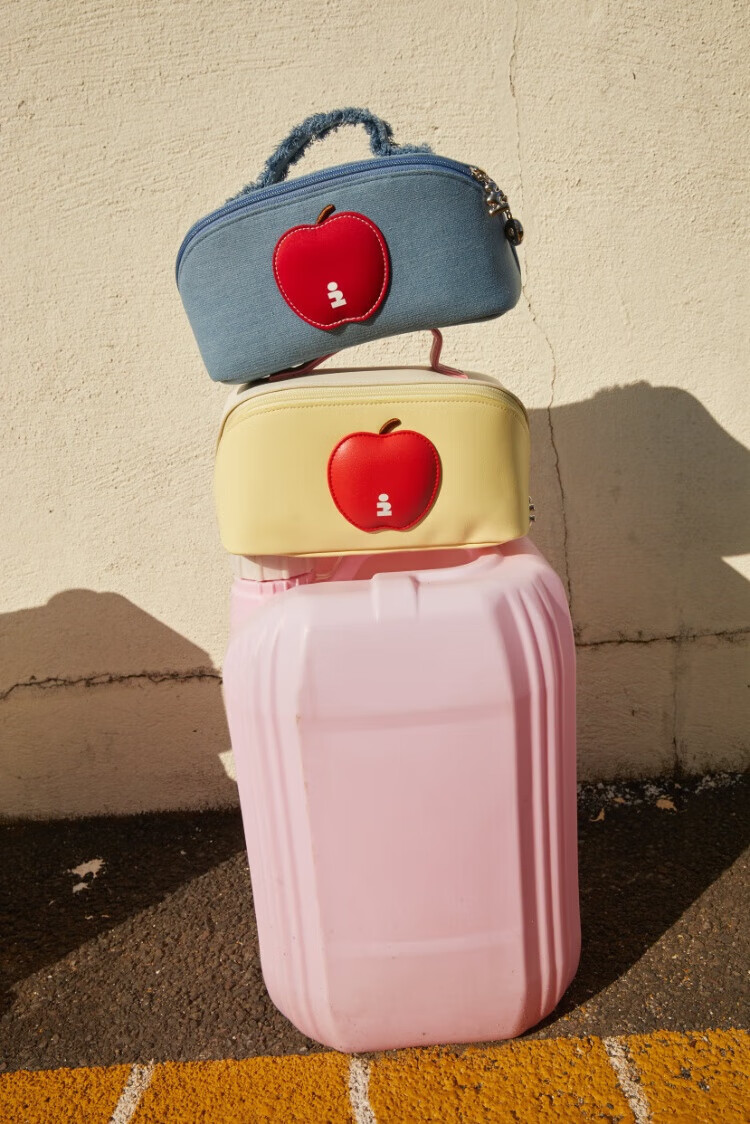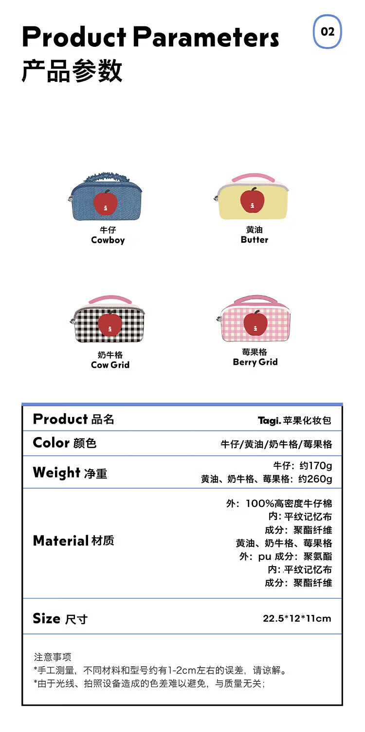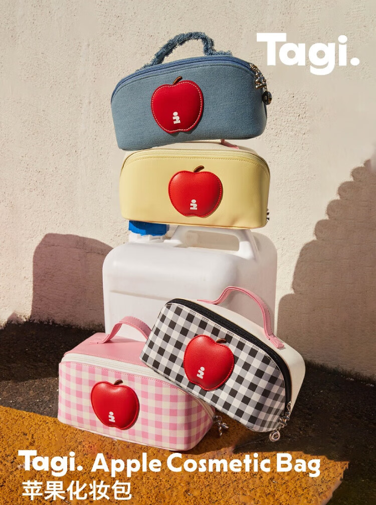 Tagi.<i>Imagine Apple bulging waterproof cosmetic bag denim leather toiletry bag travel bag storage bag-denim