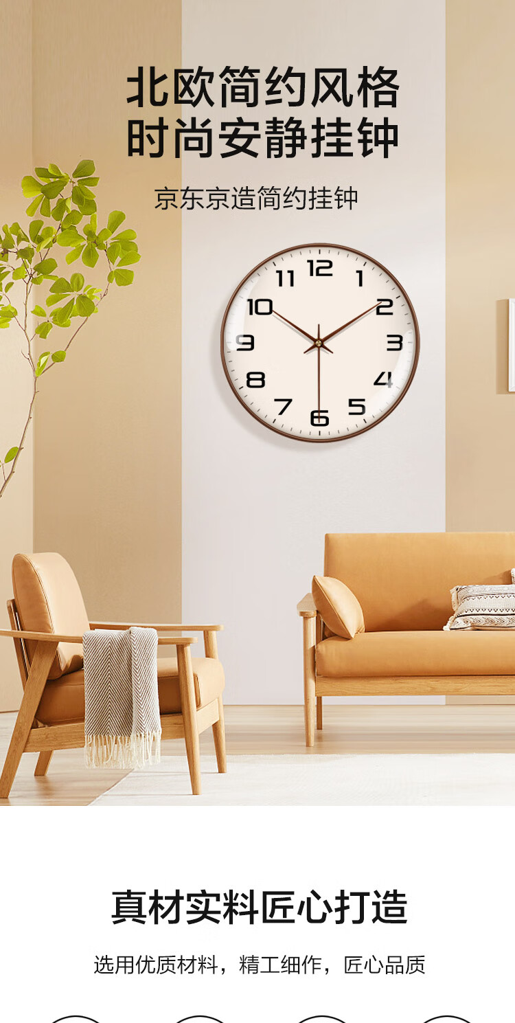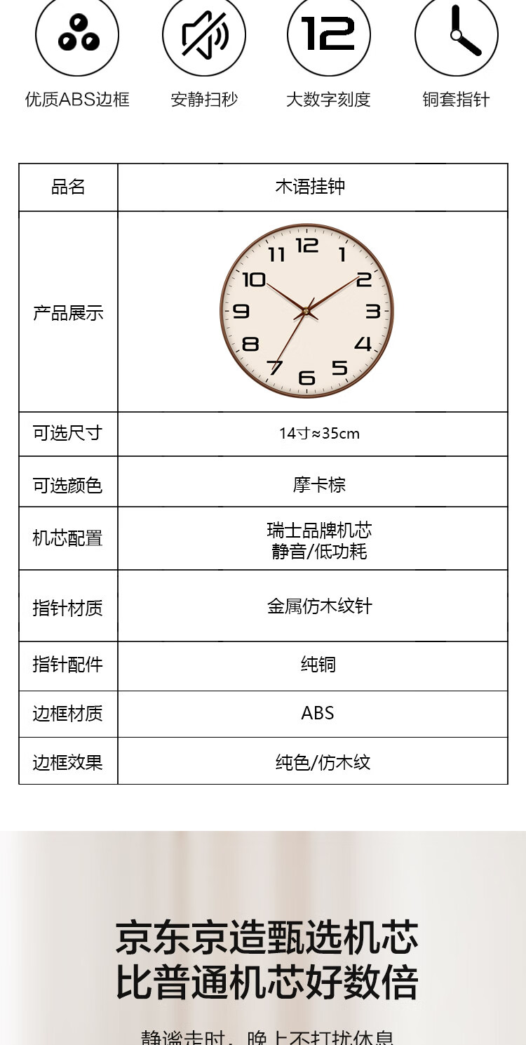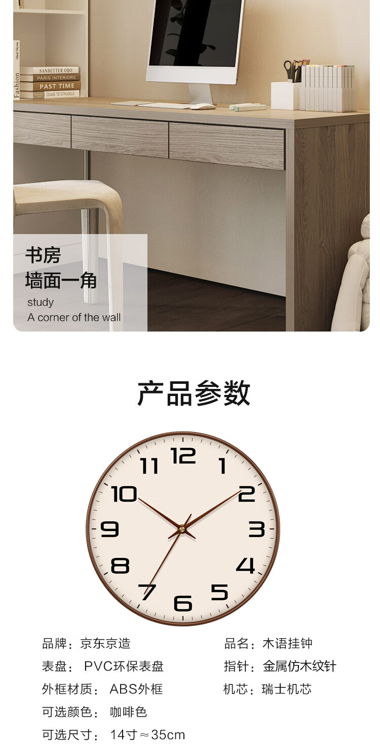 Made in Tokyo, Muyu series wall clock large scale clock wall clock living room 2025 new electronic 35cm mocha brown