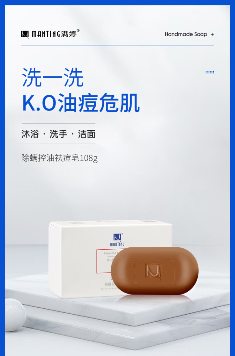 MANTING mite-removing, oil-controlling and acne-removing soap 108g (mite-removing soap soap, mite-removing back acne facial cleanser, bath soap, non-sulfur)