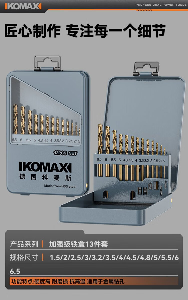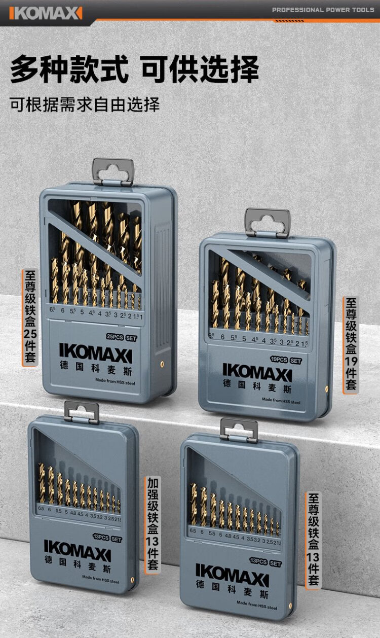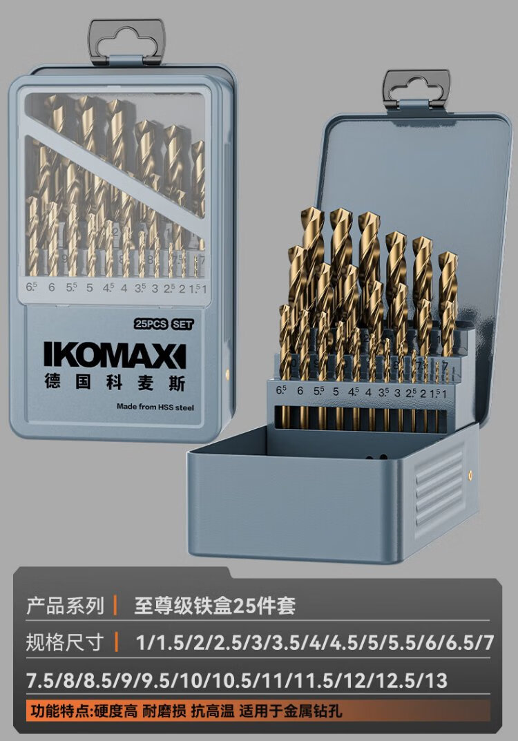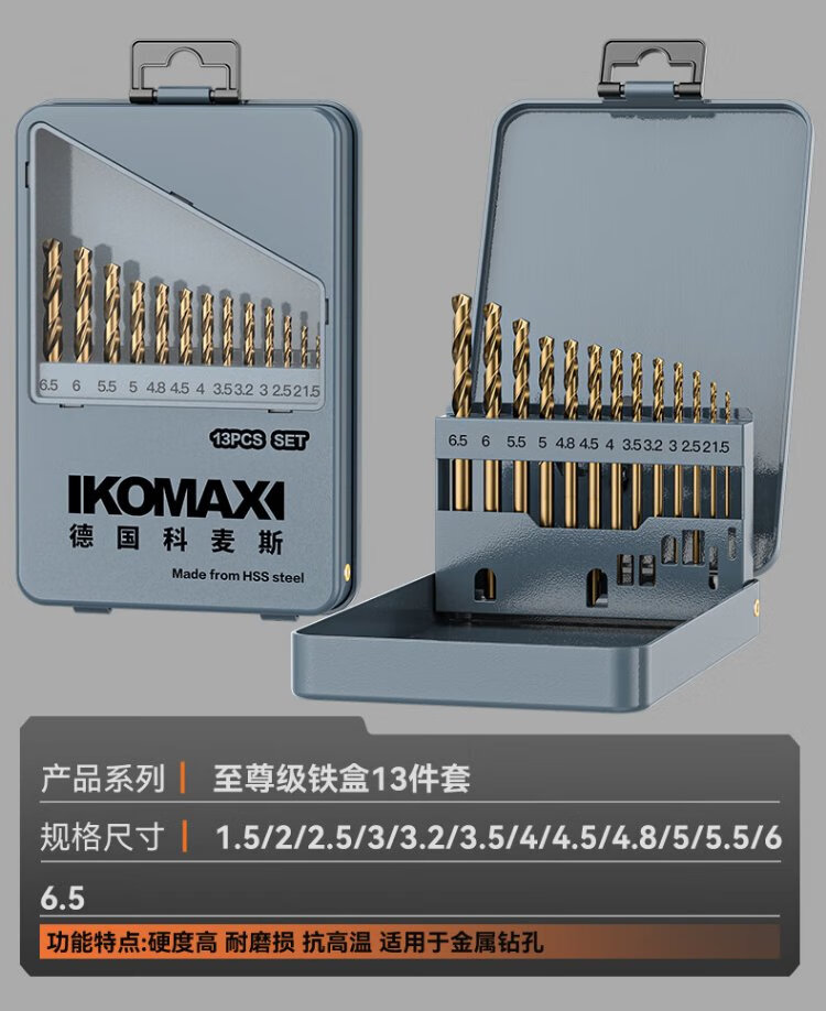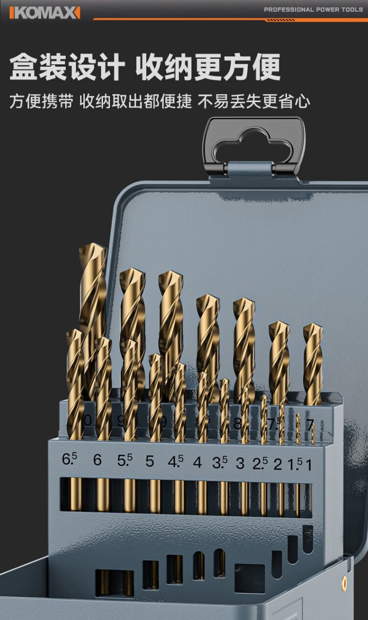 Komax twist drill bit cobalt-containing electric drill drilling bit stainless steel super-hard drilling rotor set enhanced 13-piece set