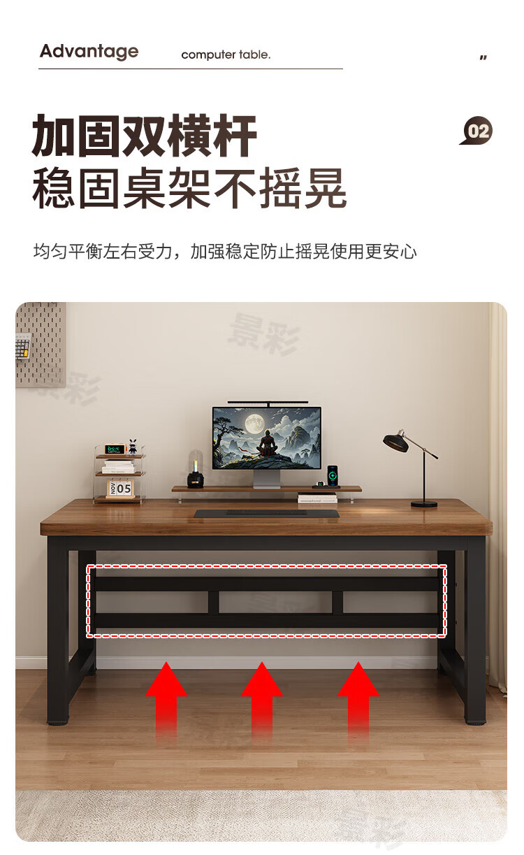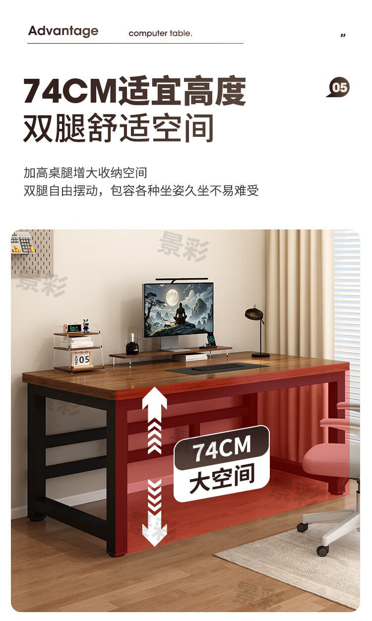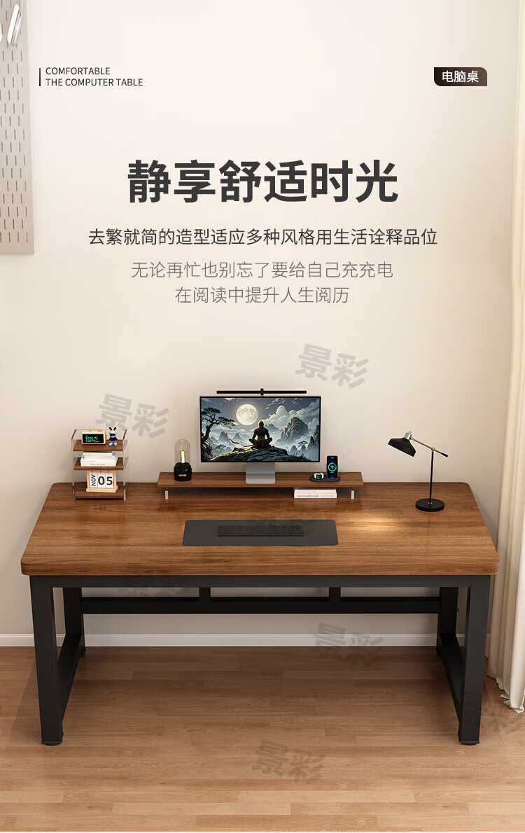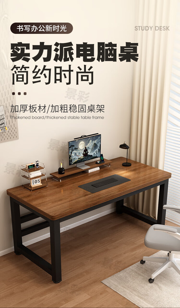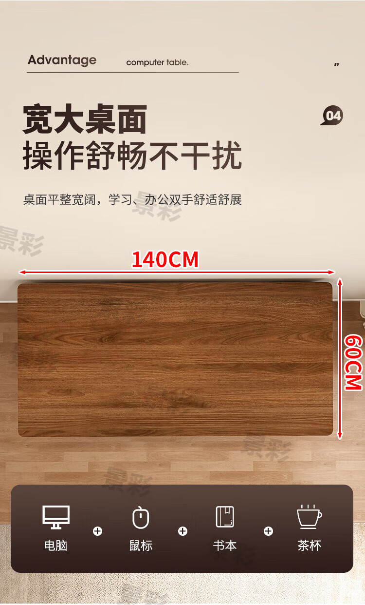 Jingcai computer desk desktop desk study table home office desk thickened e-sports table JZ29 cherry wood color 1.4 meters