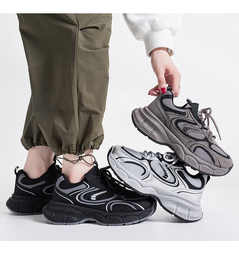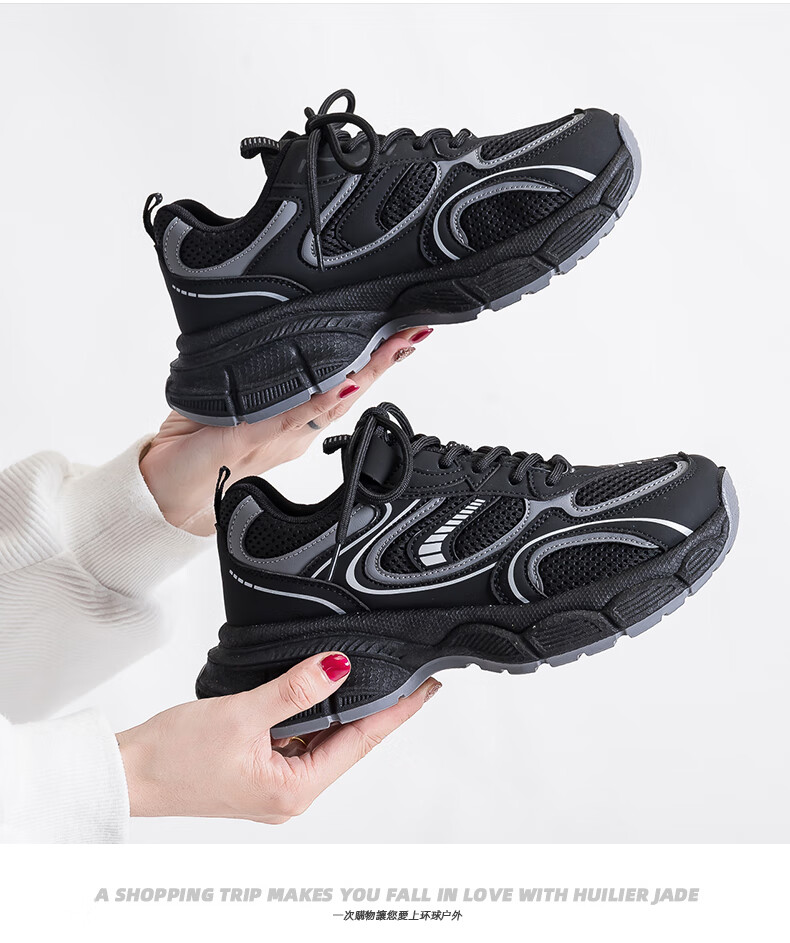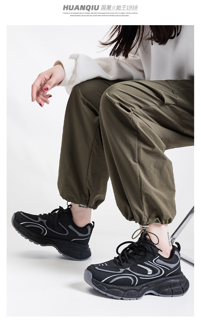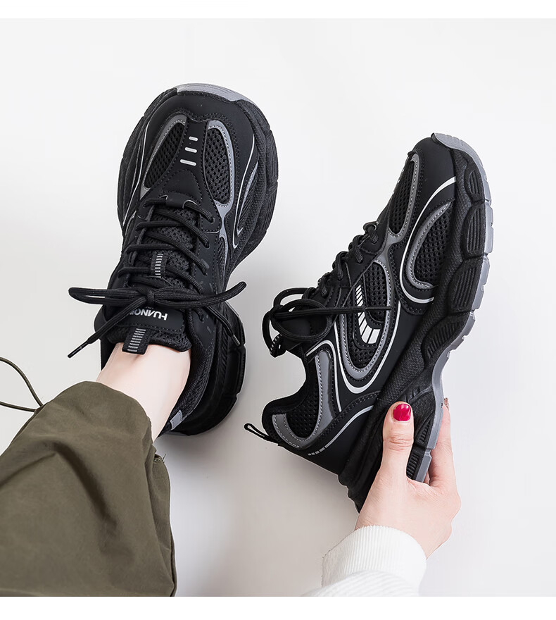Global niche black trendy dad shoes for women 2025 autumn new hot style versatile casual thick-soled sneakers