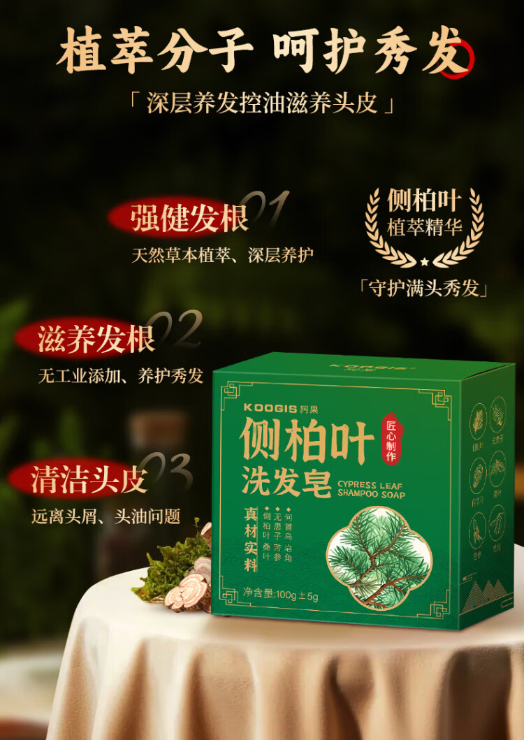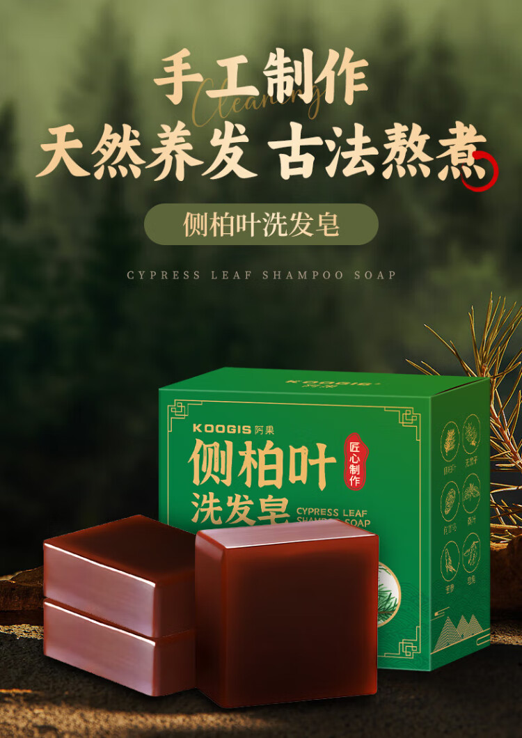 KOOGIS Platycladus arborvitae leaf shampoo soap handmade soap polygonum multiflorum Chinese herbal shampoo hair care bag black hair soap