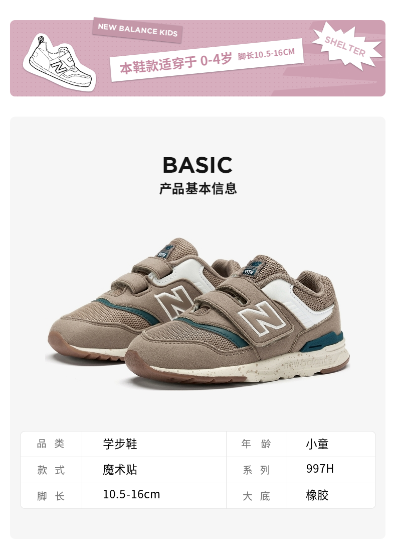 NEW BALANCE 0-4 year old infants and toddlers autumn and winter Velcro comfortable toddler shoes 997H