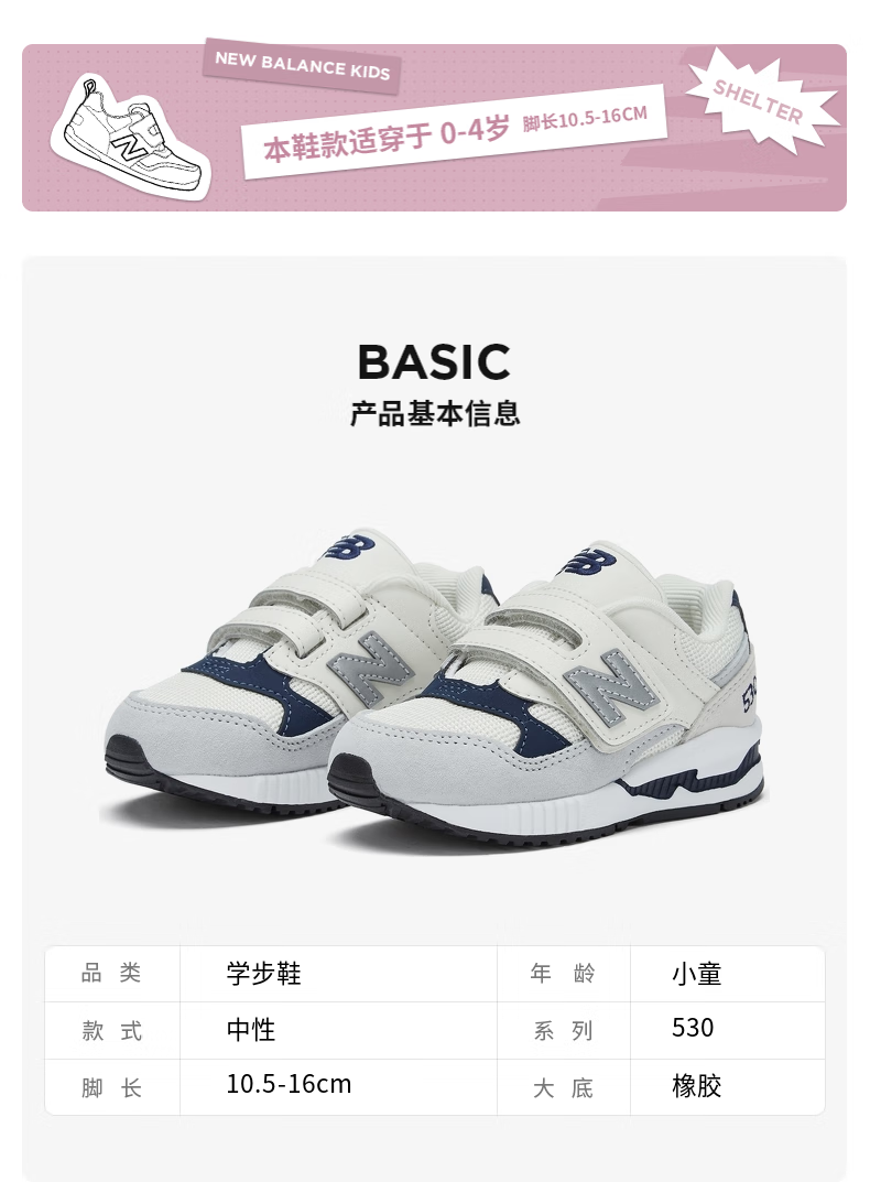 NEW BALANCE 0-4 years old autumn and winter infants and toddlers comfortable, cute and versatile toddler shoes 530S