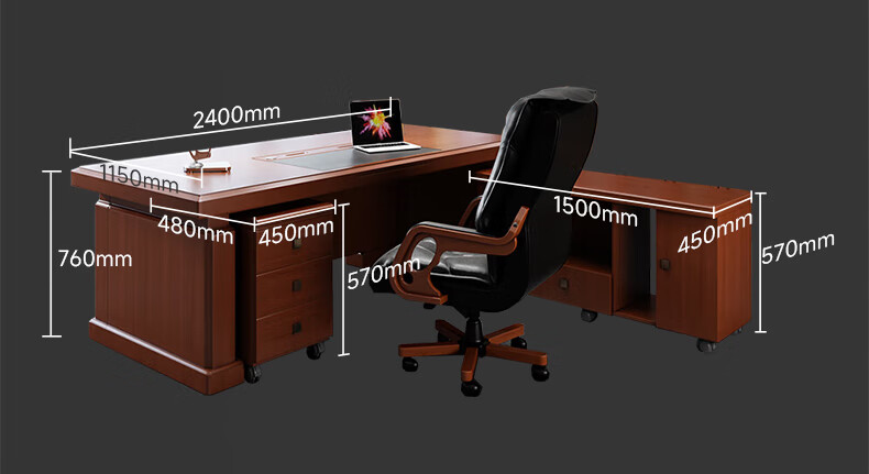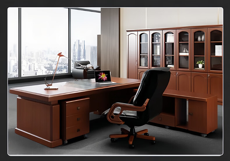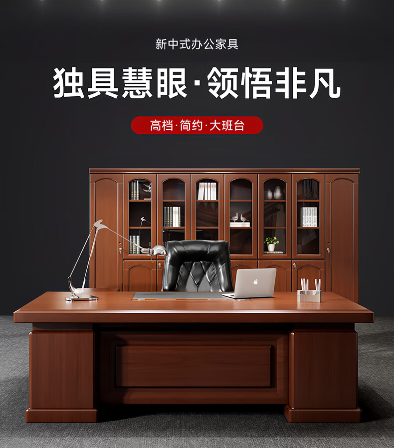 ZHONGWEI boss desk manager desk painted executive desk new Chinese style solid wood veneer desk president desk 2.4 meters including cabinet