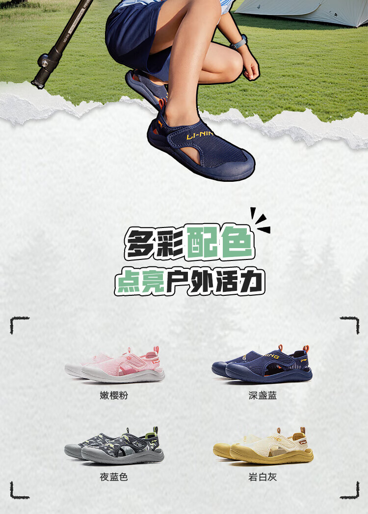Li Ning children's shoes children's sports sandals for girls comfortable toe anti-collision breathable sports casual shoes 31YKKV008-3