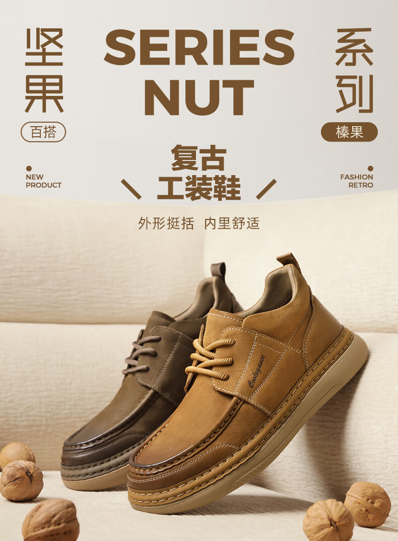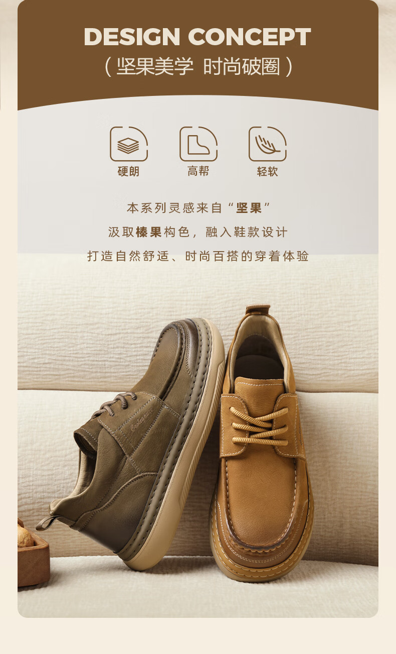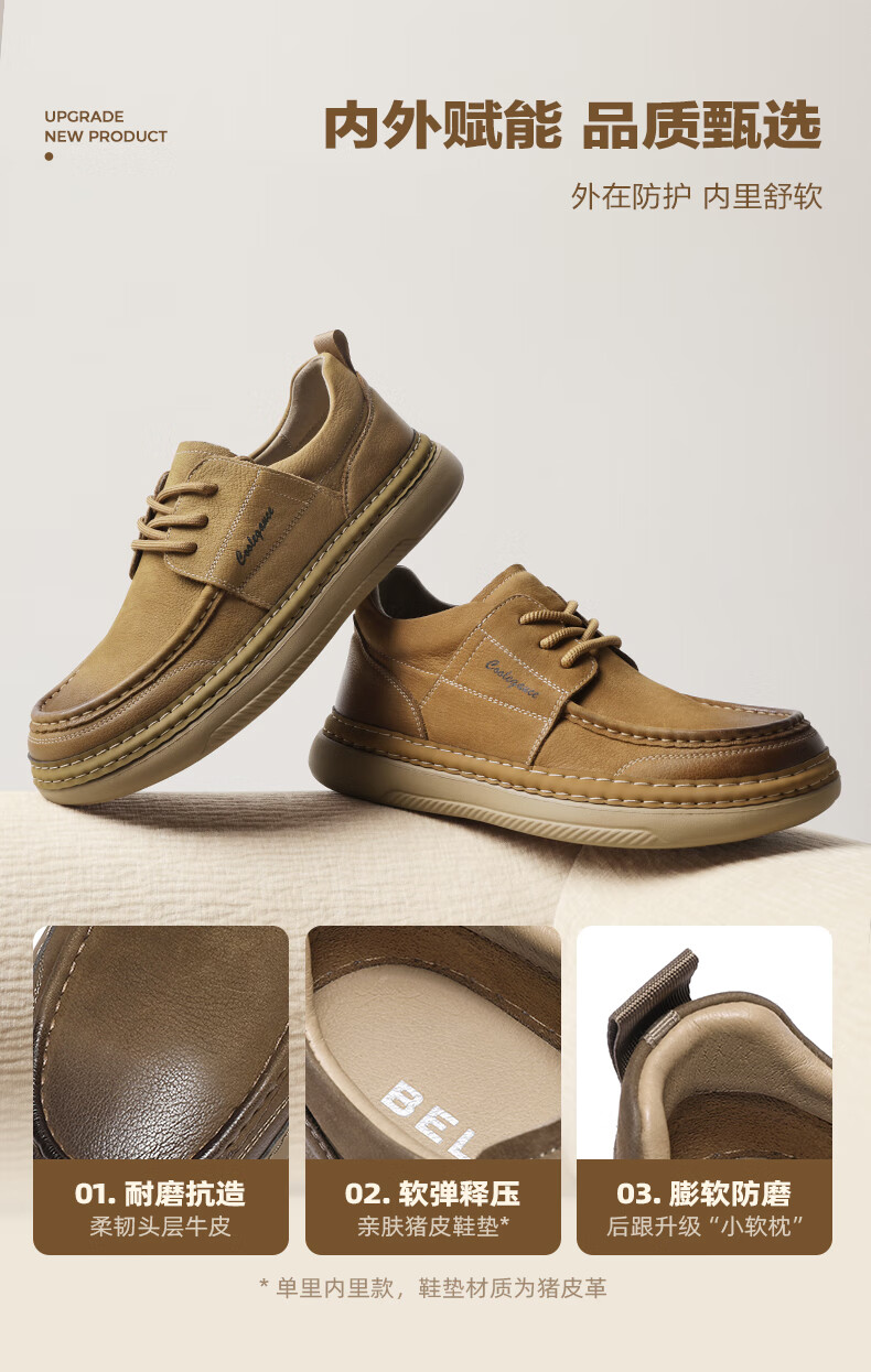 Belle Outdoor Trendy Work Shoes Men's Shoes 2025 New Soft Sole Hazelnut Toast Shoes A1864AM5 Khaki 42