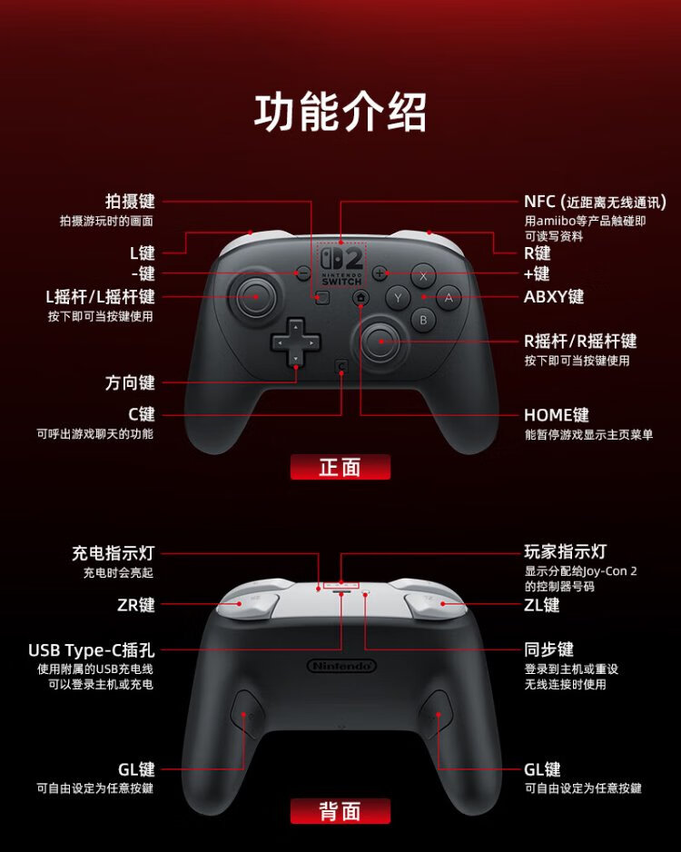 Nintendo Switch Nintendo Second Generation Pro Controller Switch2 Hong Kong Version Black Controller Accessories Casual Family Party Birthday Gift Bluetooth Controller