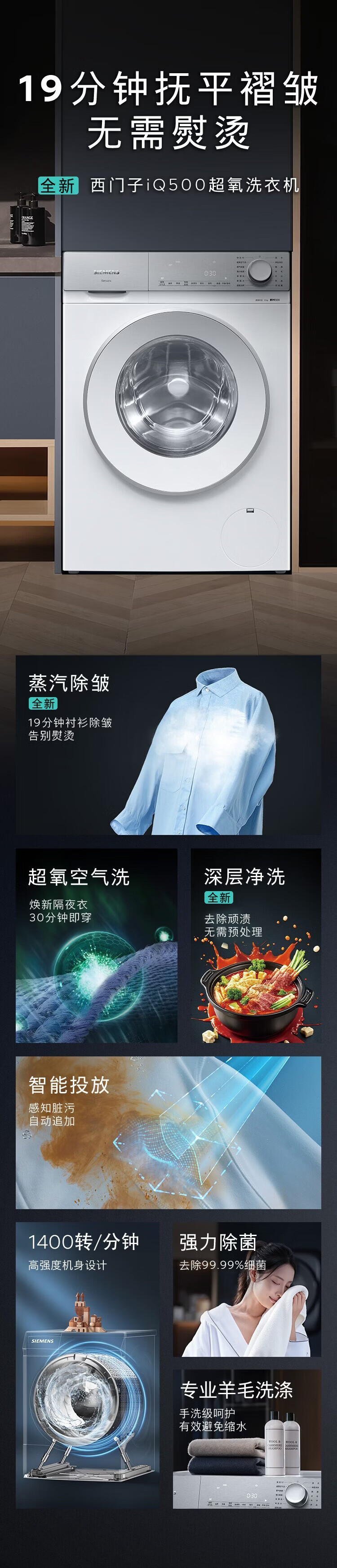 SIEMENS Small Crystal Diamond Luxury Care Master 10KG Large Capacity Fully Automatic Drum Washing Machine Super Oxygen Air Wash Steam Wrinkle Removal Super Oxygen Odor Elimination Intelligent Placement WG54H2V00W