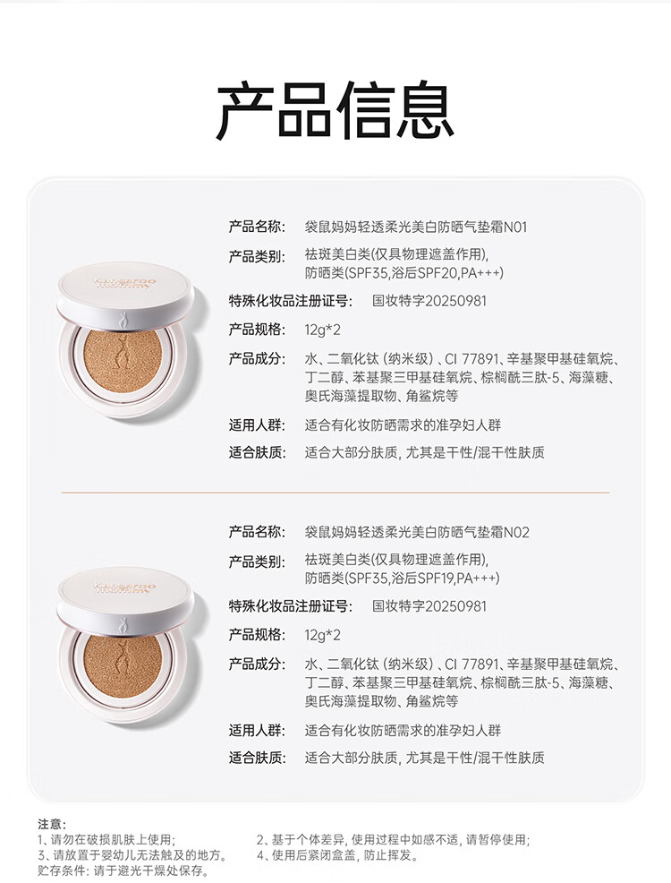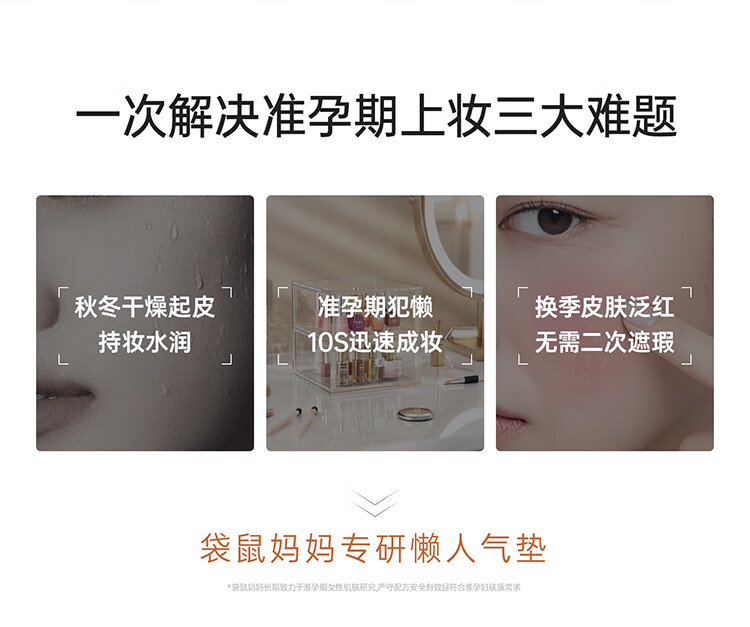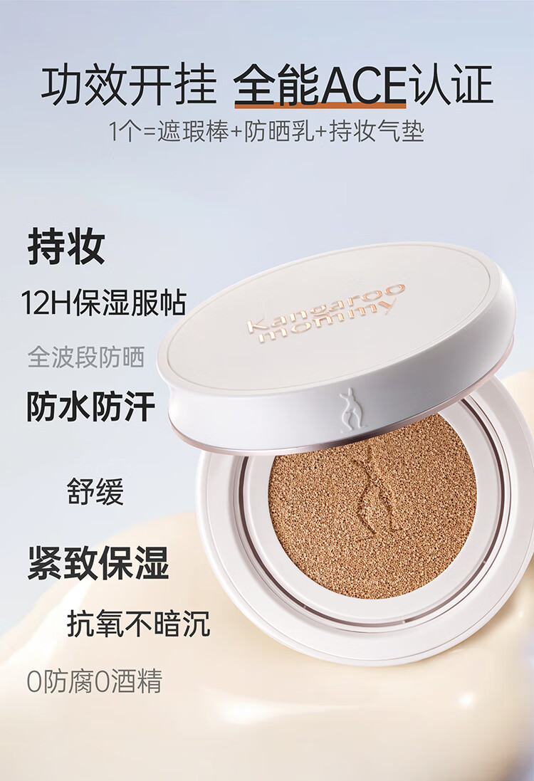 Kangaroo Mom Whitening Skin Nourishing Air Cushion Sun Protection Isolation Concealer Three-in-One Long-lasting Makeup Liquid Foundation Oil Control Skin Care Cosmetics for Pregnant Women
